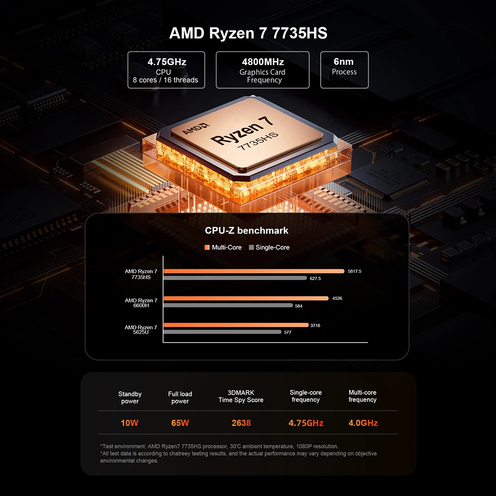 Chatreey AN3P Mini PC R7 7735HS 680M ordinateur de bureau de jeu avec WiFi 6/Bluetooth 5.2/HDMI/DP