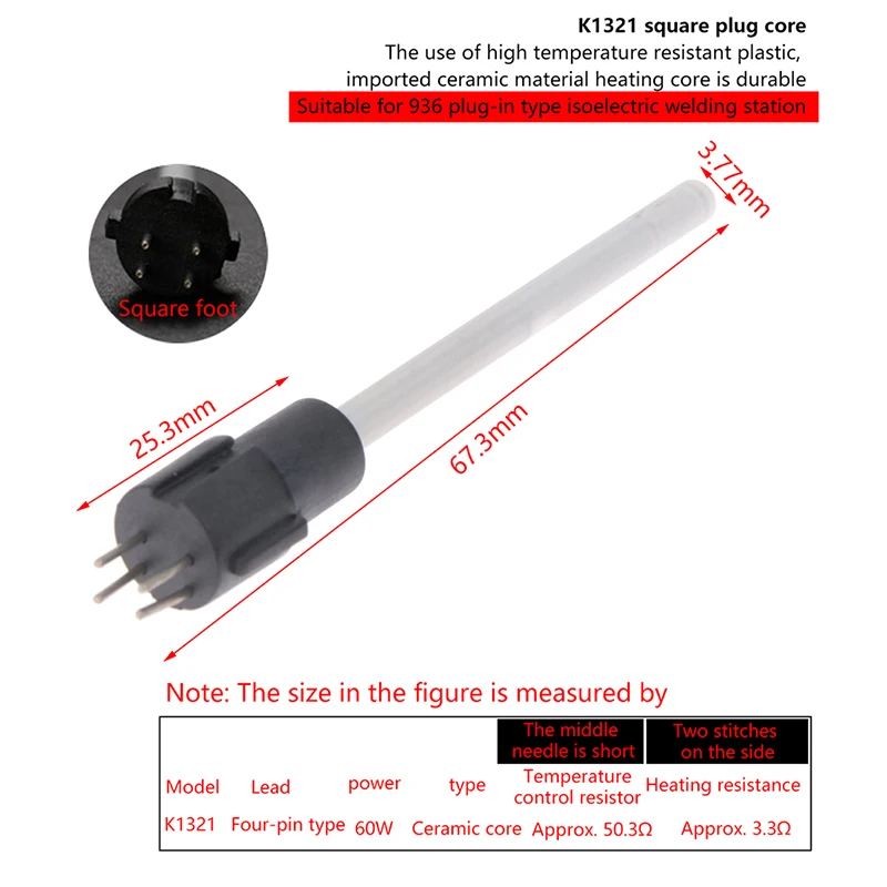 Chauffage en céramique Plug-in allergique, D60W, K1321, C1321, 4 broches, noyau de chauffage 152, 220V