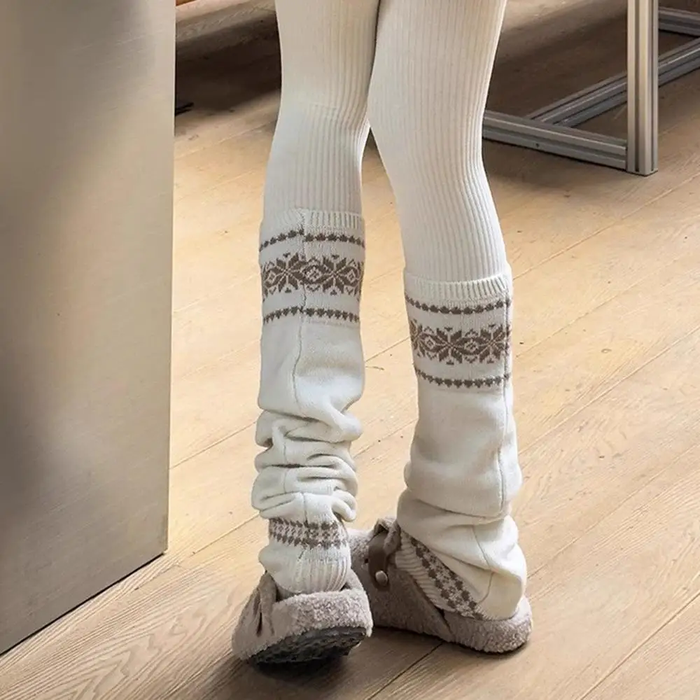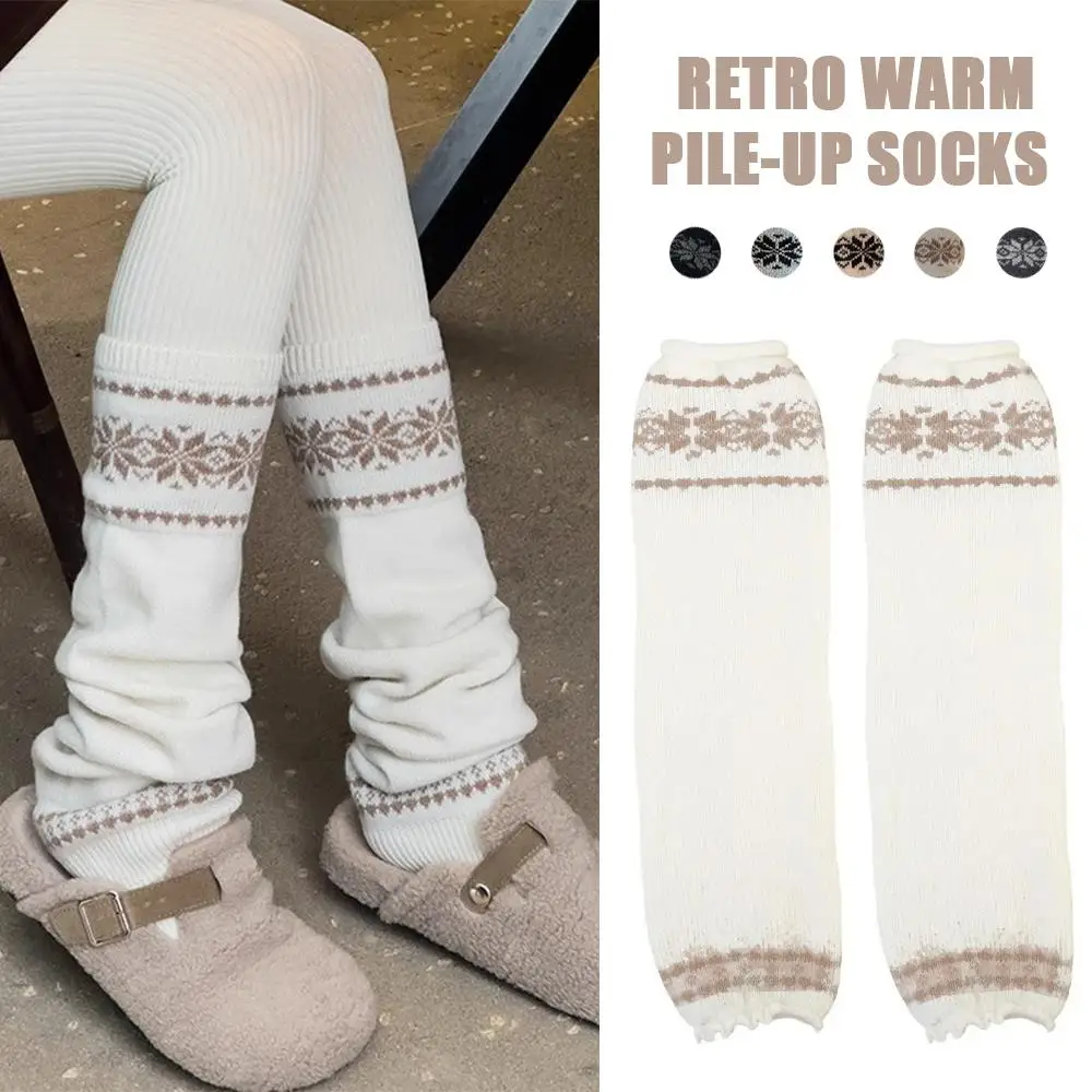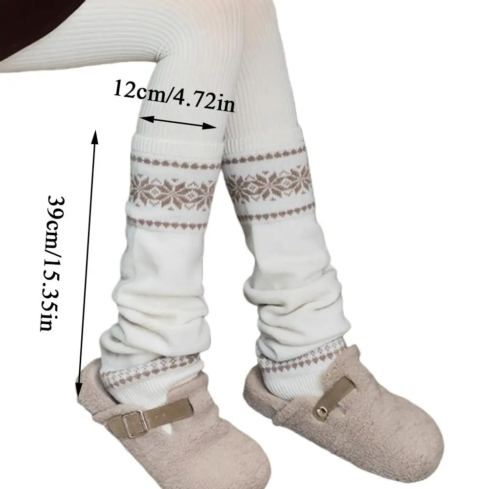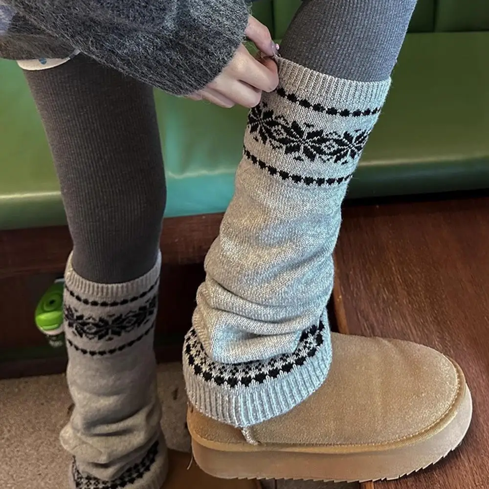 Chaussettes coréennes pour femmes, automne et hiver, piles de chaussettes, tricot épais, flocons de neige, couvre-mollet gris fin et chaud, couvre-jambes chauds