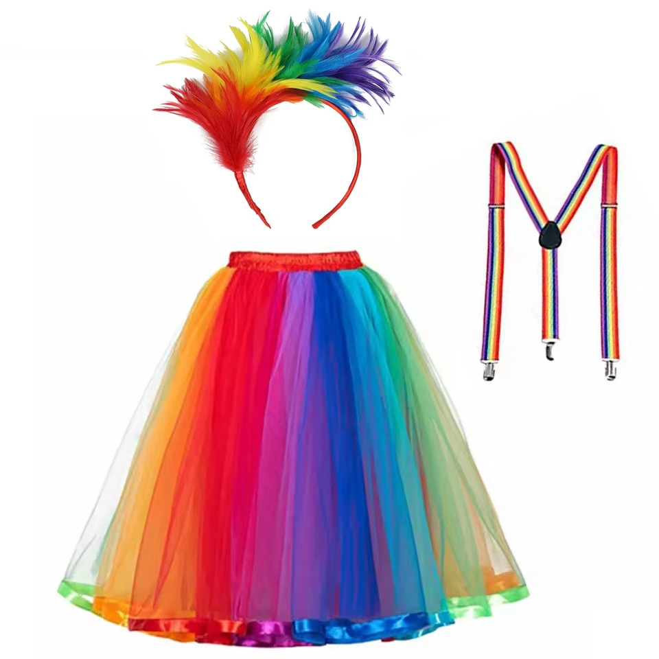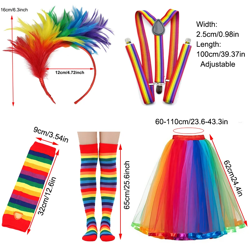 Chaussettes de couverture de manches de sangle de bandeau arc-en-ciel robe longue arc-en-ciel, 3 pièces/5 pièces, adaptées pour Halloween carnaval fête Cosplay habiller