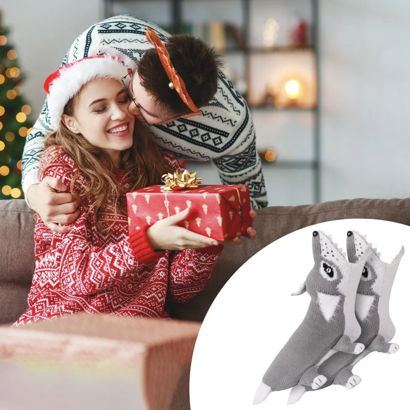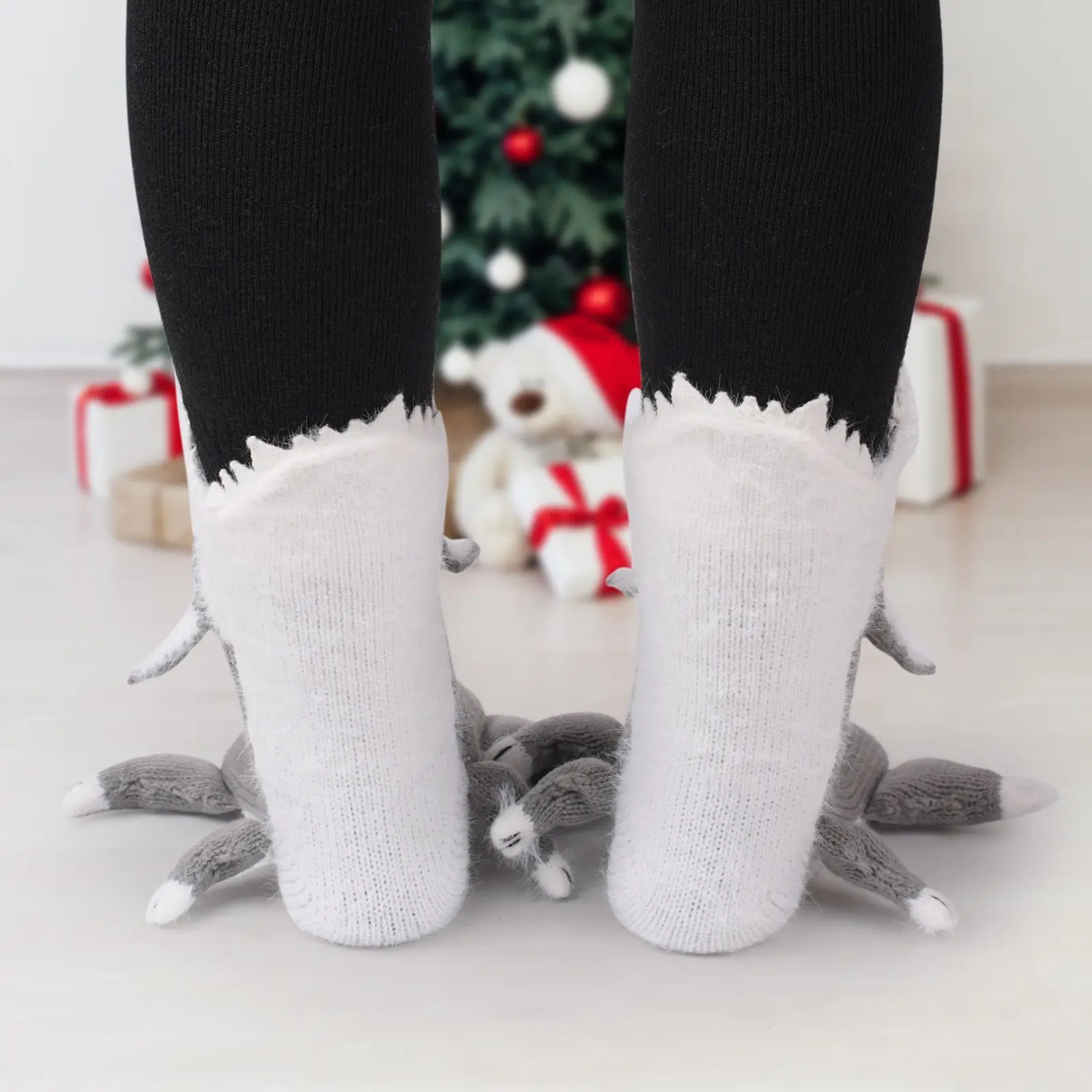 Chaussettes épaisses, mignonnes, amusantes et créatives en laine grise, mi-mollet, antidérapantes, pour adultes, pour la maison, chaudes et confortables