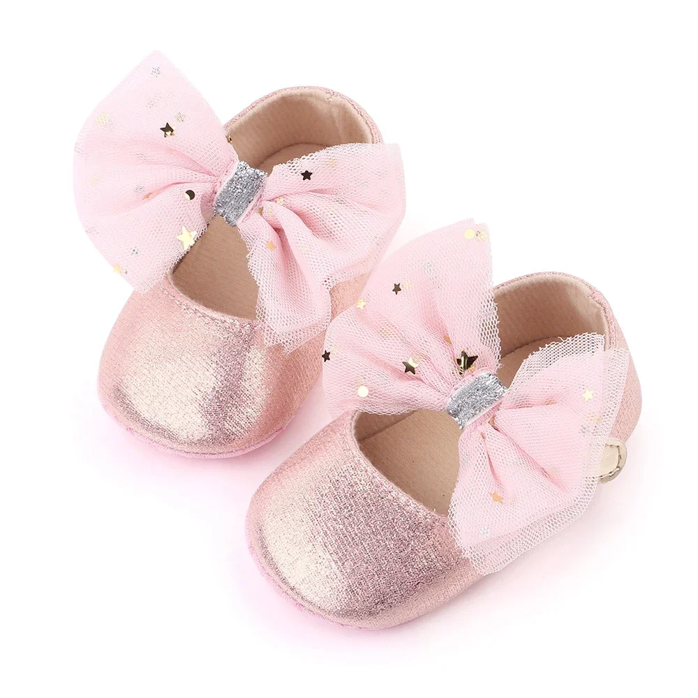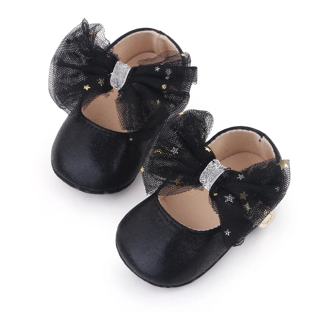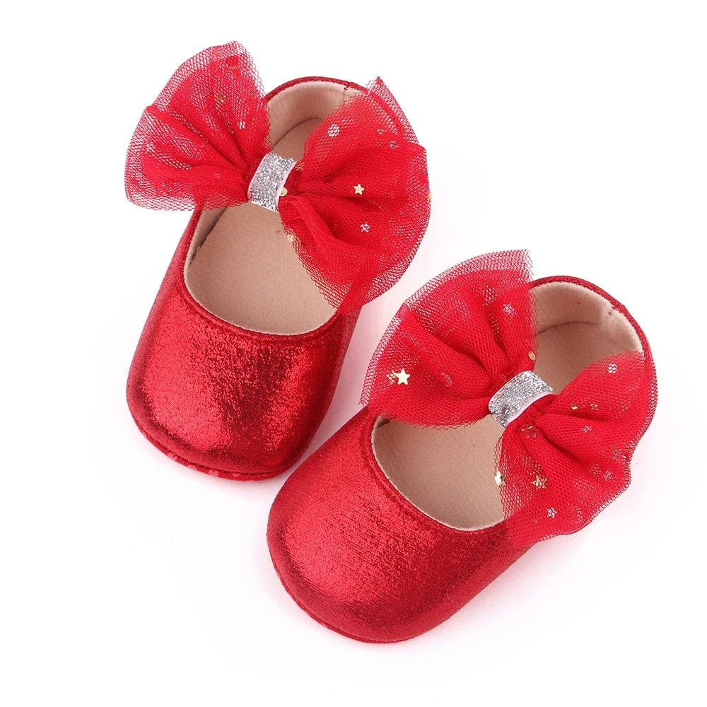 Chaussures Confortables en Cuir Artificiel avec Nœud Papillon, pour Bébé Fille, Chaussures à Semelle en Coton, Mode pour Premiers Marcheurs