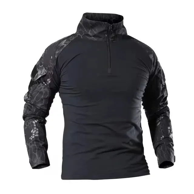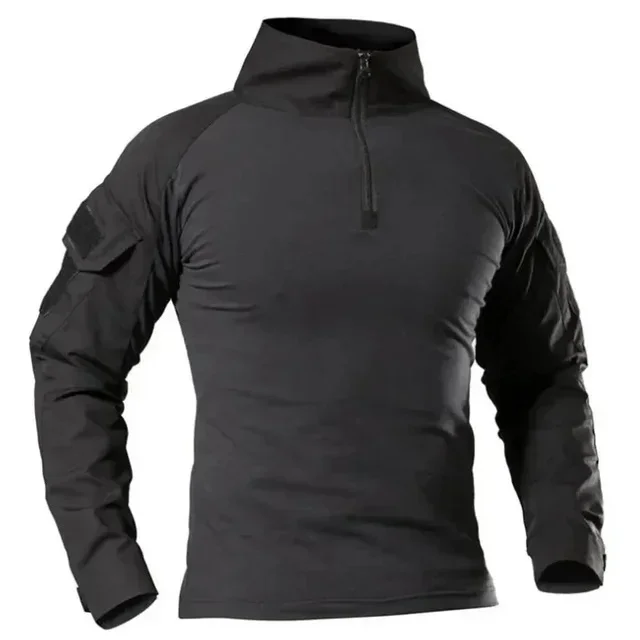 Chemise de Combat à manches longues pour hommes 1/4 fermeture éclair Ripstop coton vêtements de travail hauts chemises tactiques Camo Airsoft t-shirts Paintball t-shirts
