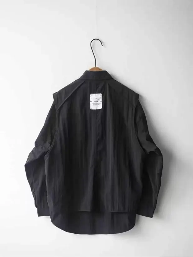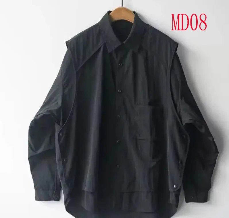 Chemise noire à manches longues pour hommes, design ample, veste décontractée, costume, haut pour hommes MD08