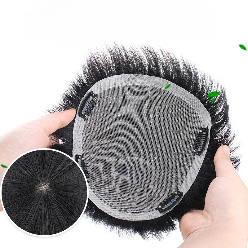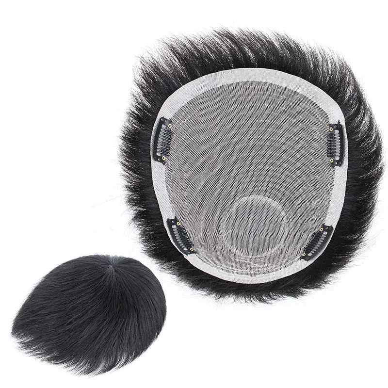 Cheveux humains 16x18CM 18X20CM hommes toupet avec pince haut en soie respirant et naturel postiche masculine pour porter rapidement augmenter les cheveux