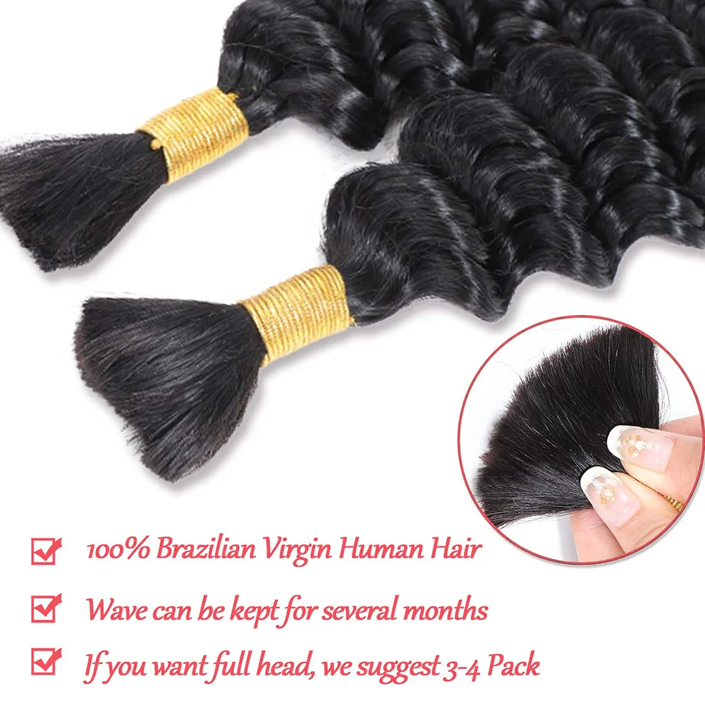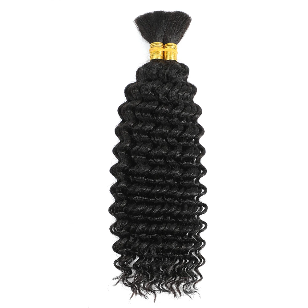 Cheveux humains en vrac 10A Deep Wave pour tresses bohèmes, extensions de cheveux bouclés profonds sans trame pour tressage, 100g de cheveux brésiliens Remy