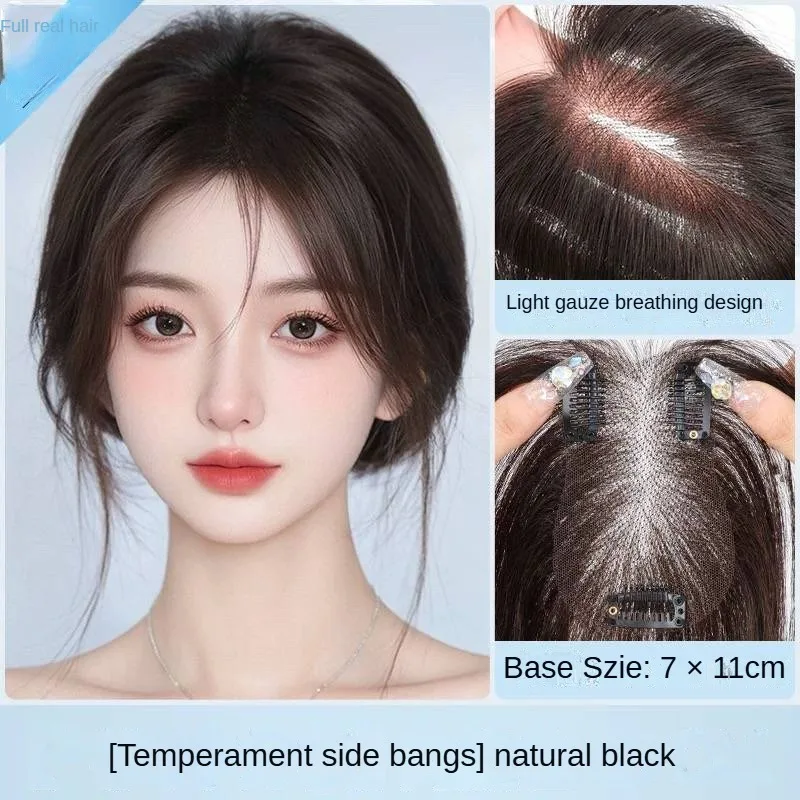 Cheveux humains Ultra-fins en dentelle pour femmes, 7x11cm, frange à Clip, accessoires de postiche, vrais cheveux moelleux, augmentent le Volume