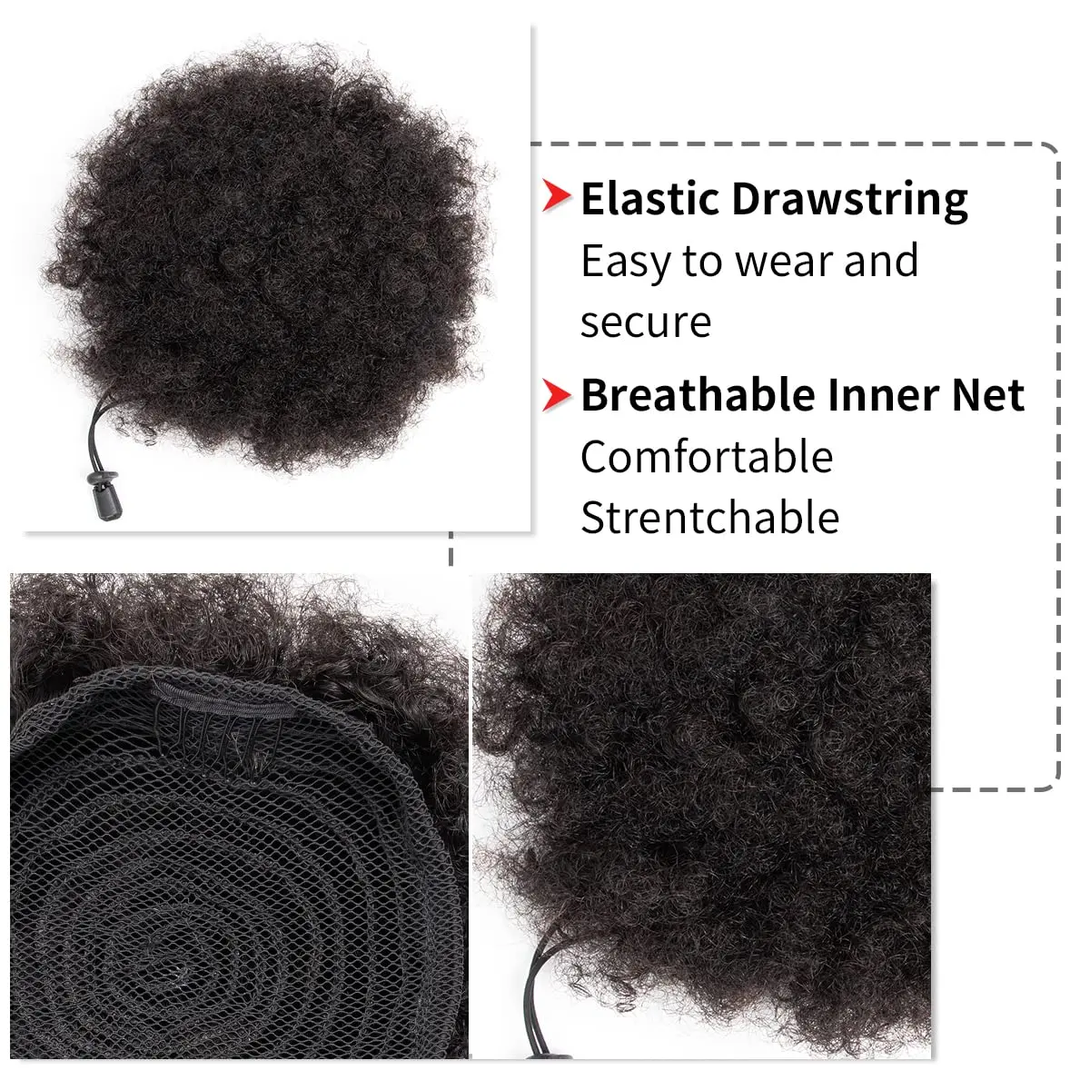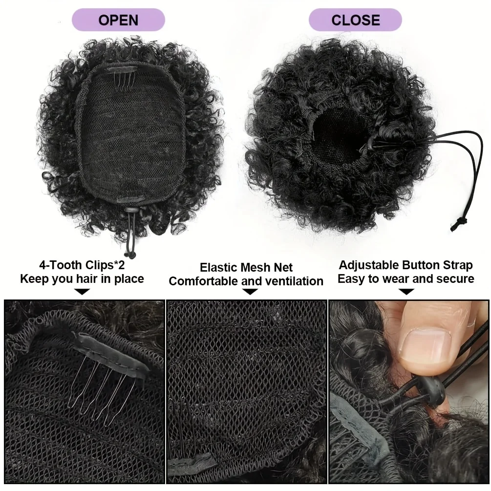 Matériau : queue de cheval avec cordon de serrage Afro Puff fabriquée en cheveux synthétiques de haute qualité résistants à la chaleur, super doux et léger.