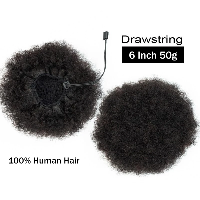 Chignons de cheveux humains queue de cheval brésilien Afro crépus bouffées courtes bouclés cordon queue de cheval Extensions couleur noire naturelle pour les femmes