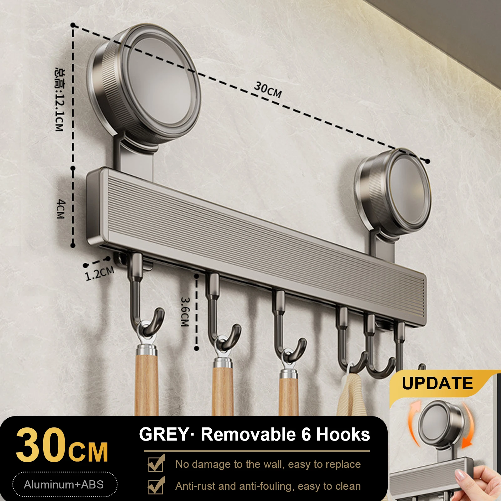Cintres à crochets de cuisine, support mural sans poinçonnage, Rail mural pour ustensiles de cuisine, cuillère, pelle, planche à découper, support de rangement