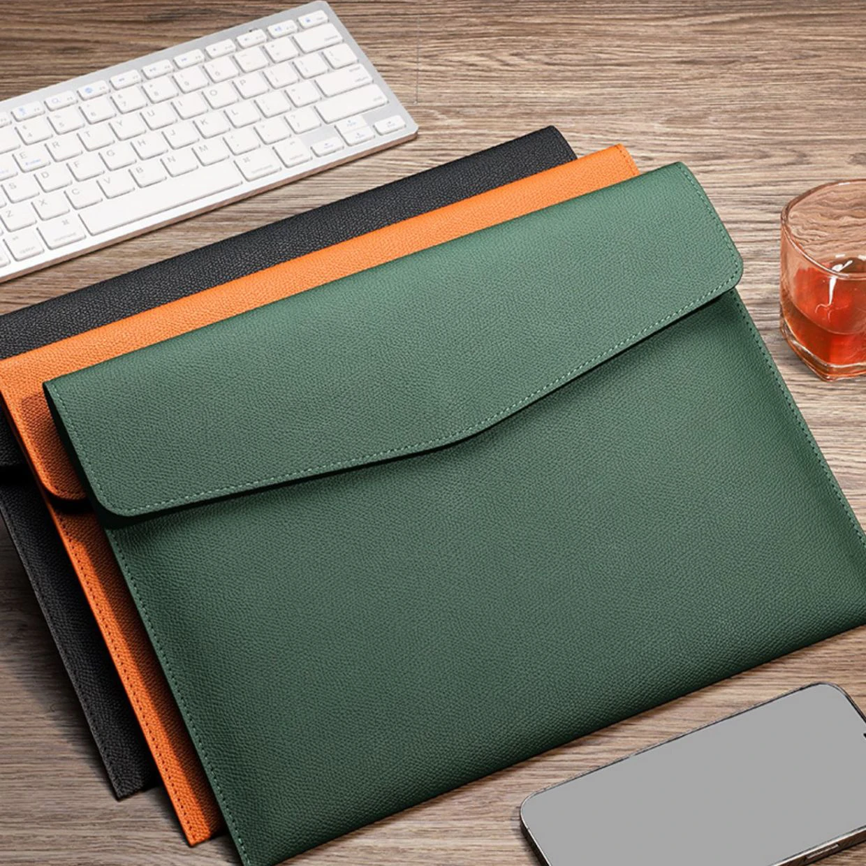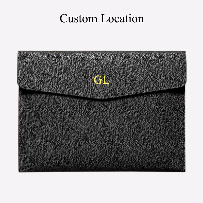 Classeur A4 en cuir PU, porte-documents, portefeuille étanche, enveloppe, étui, bouton magnétique, initiales personnalisées