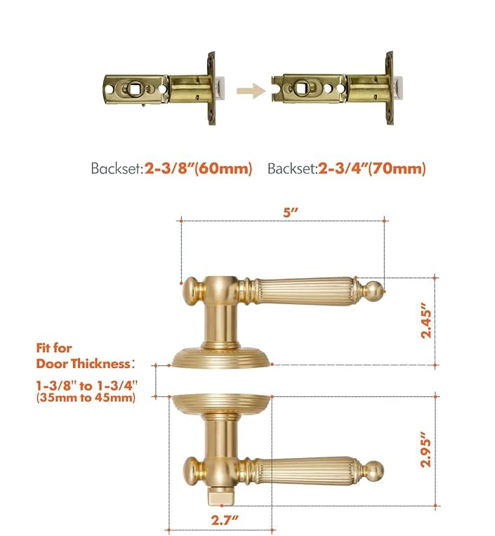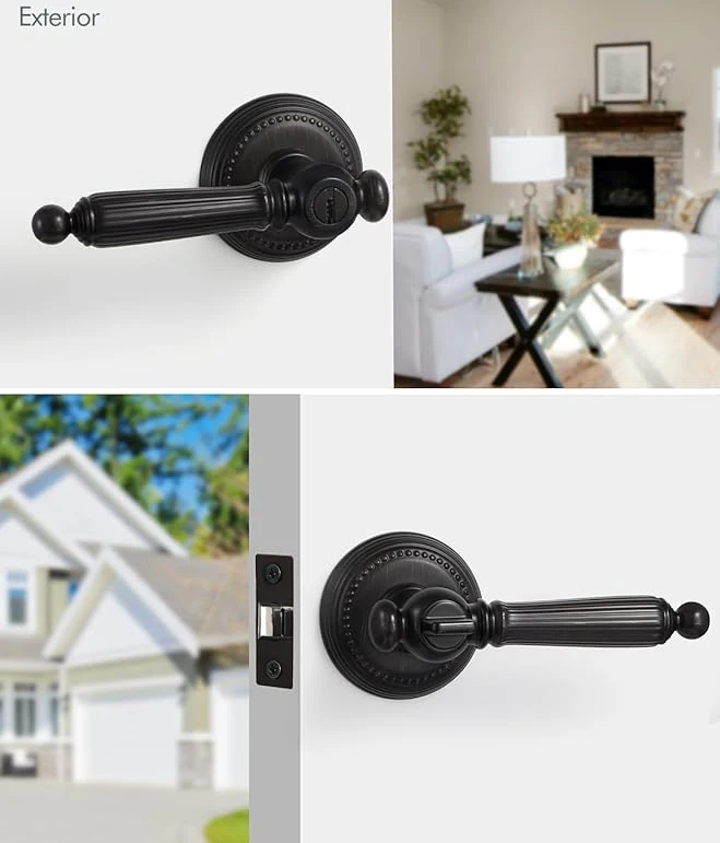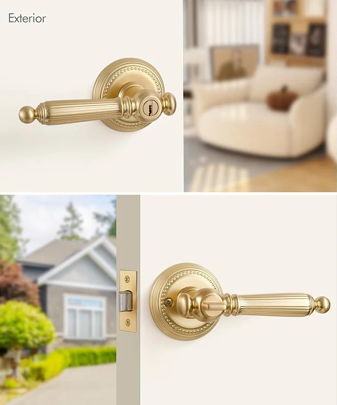 Clé en bronze antique jaune, poignée de porte d'entrée avec serrure, serrure et clé de porte extérieure, poignée de porte rétro de chambre à coucher, alliage de zinc