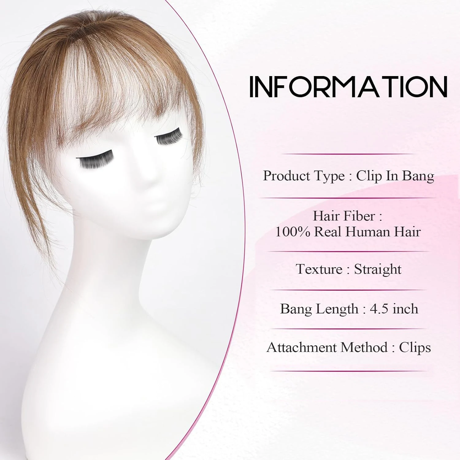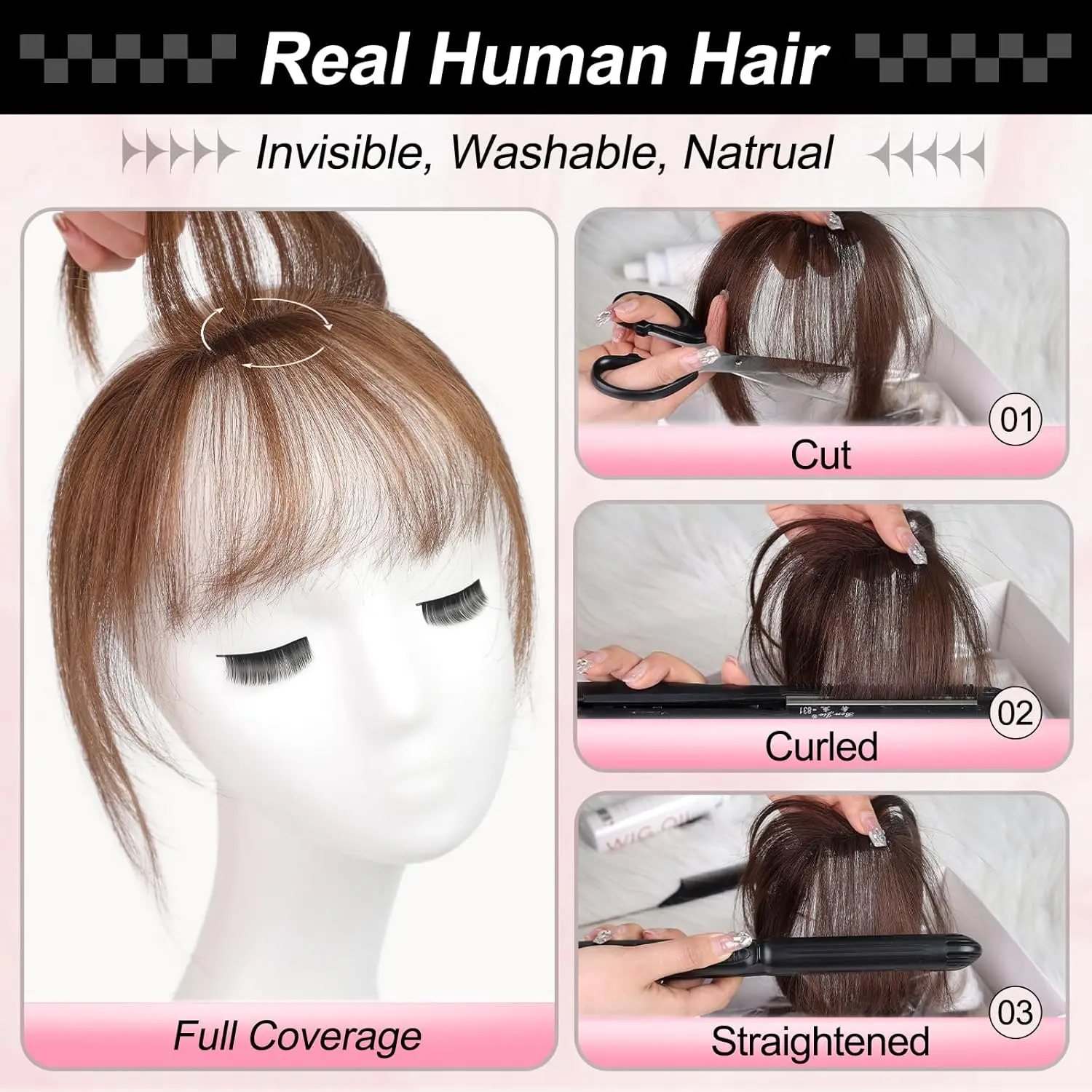 100% Human Hair: Our hair bangs are made with 100% real human hair, ensuring that they closely resemble your natural hair texture and color. Soft, fluffy like your own hair. Nobody will find you are wearing a fake bangs. It can be trimmed, heated, dyed or restyled base on your own needs. We recommend taking it to your stylist for a custom cut that frames your face perfectly !