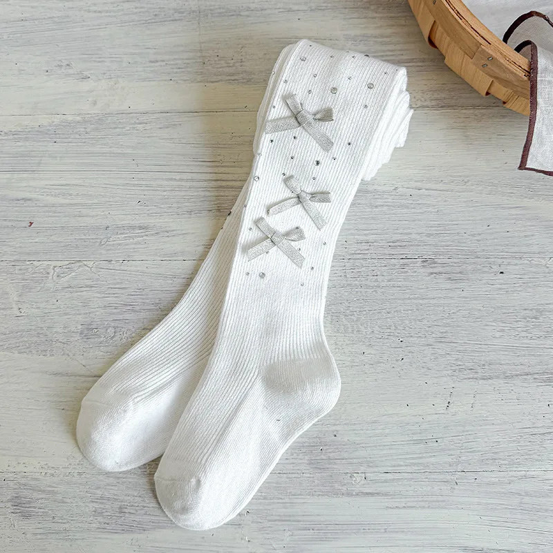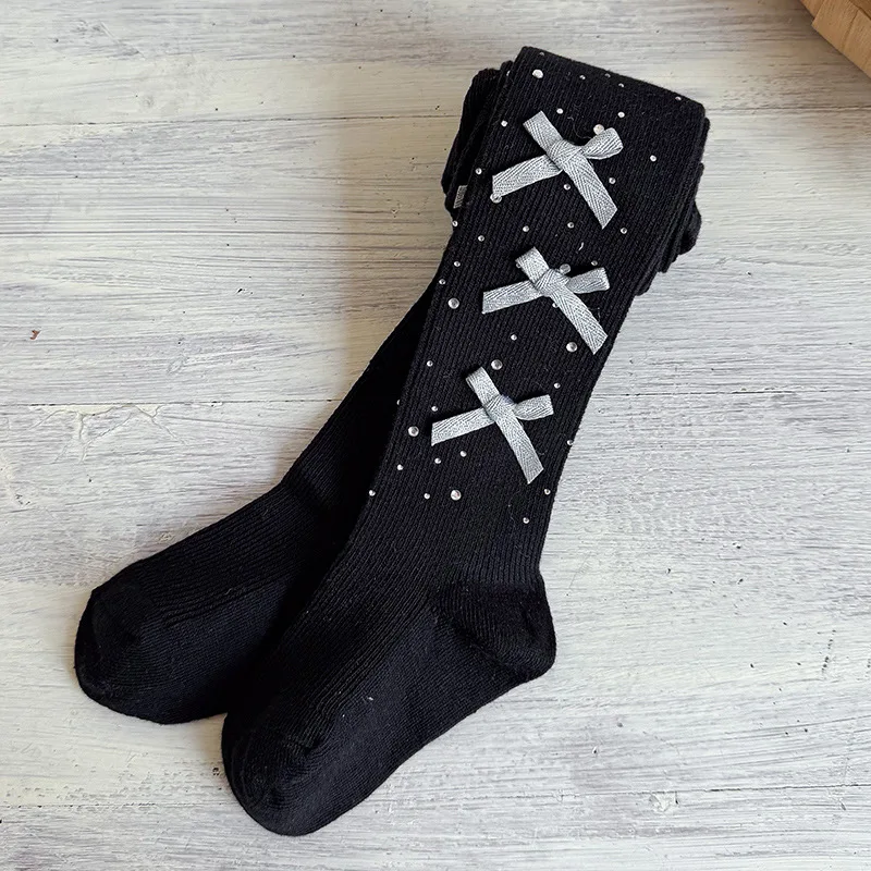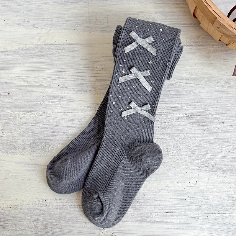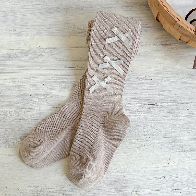 Collants pour enfants de 0 à 9 ans, collants avec nœud pour bébé, printemps-automne, collants en coton peigné d'épaisseur moyenne pour filles
