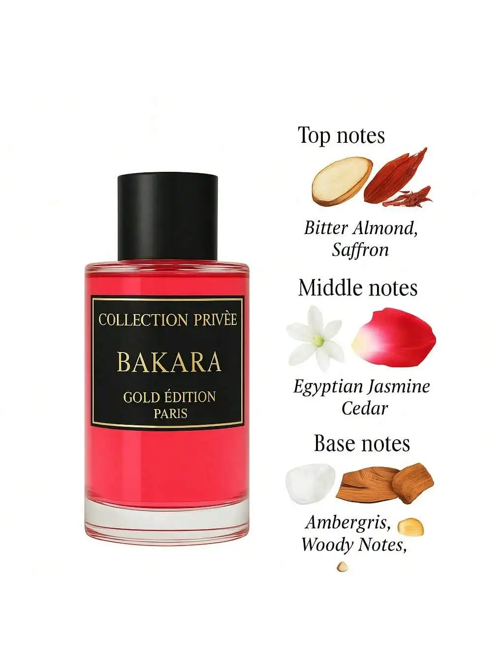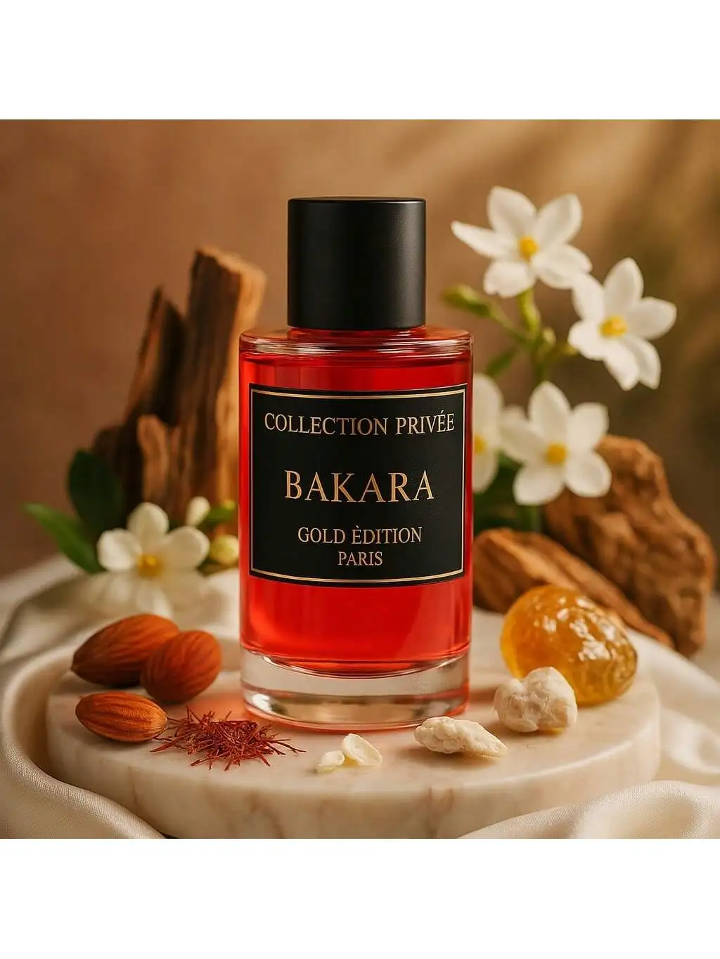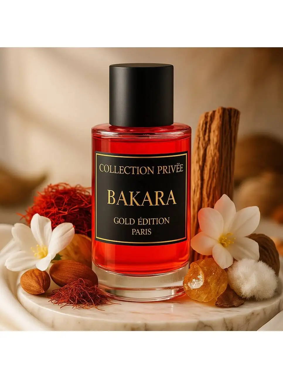BAKARA est une fragrance mystérieuse et raffinée de la Collection Privé Gold Edition, présentée dans un flacon de 50 ml.