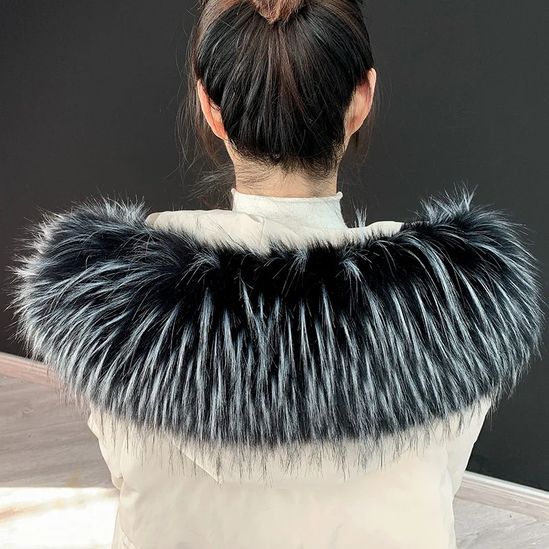 Nom du produit: Faux Col détachable en fausse fourrure de raton laveur pour femme, pour manteau d'hiver et capuche, Faux Col décoratif, fausse fourrure, personnalisé, Faux Col, vêtement de cou détachable