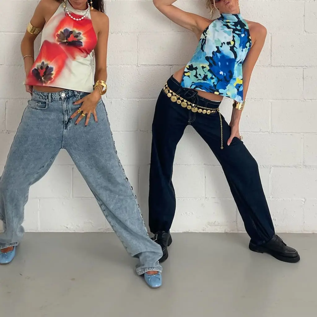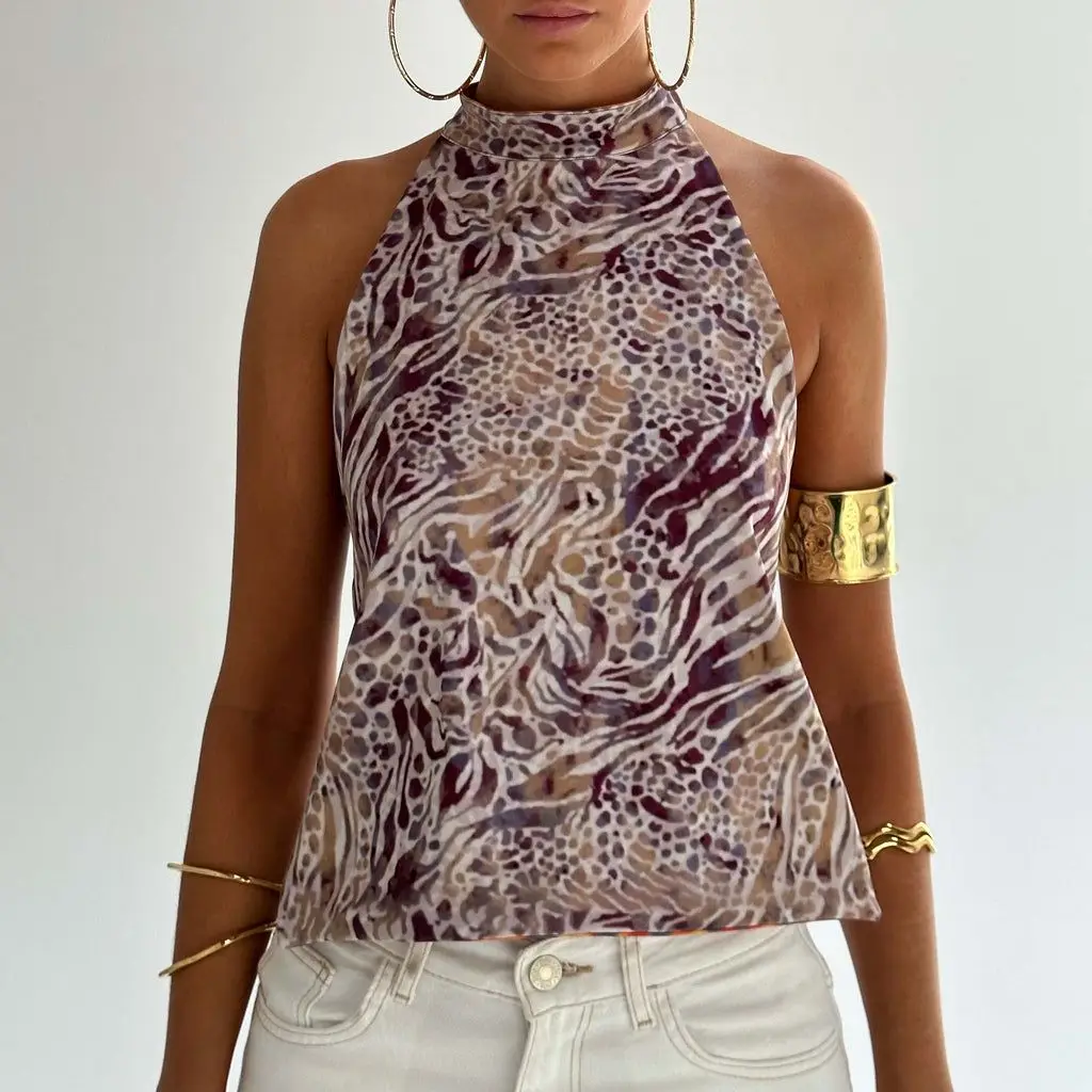 Haut dos nu pour femmes, hauts sans manches, dos nu, pois/imprimé floral, gilet d'été pour fête en Club