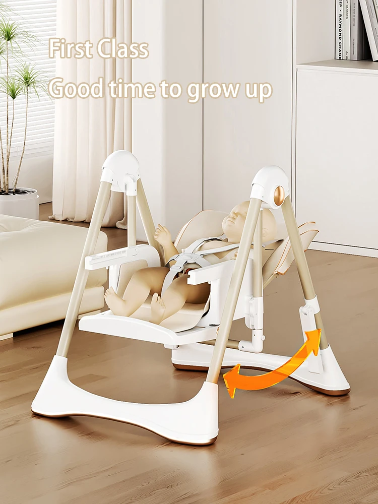 Combinaison chaise de salle à manger et balançoire pour bébé avec hauteur de siège réglable, plateau, siège rembourré, ceinture de sécurité et articles pour bébé pliants à une touche
