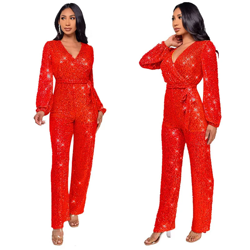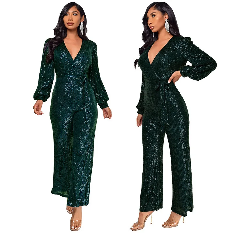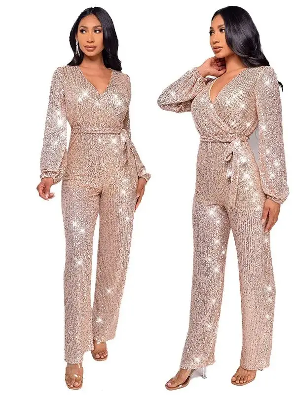 Combinaison de Club à paillettes scintillantes pour femmes, col en v, élégante, dorée, paillettes scintillantes, barboteuse de fête