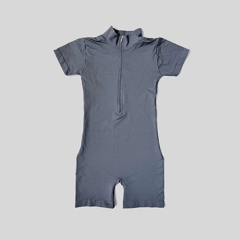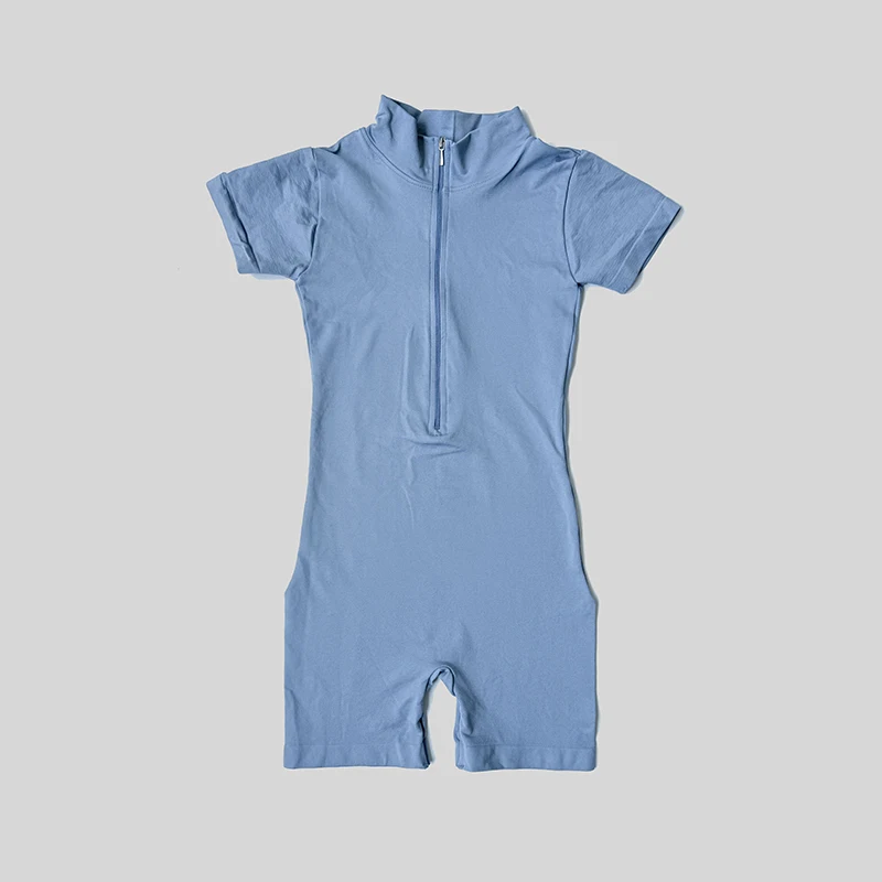 Combinaison d'été à manches courtes avec fermeture éclair, tenue de sport, Fitness, body pour femmes, course à pied, vêtements d'entraînement à la mode