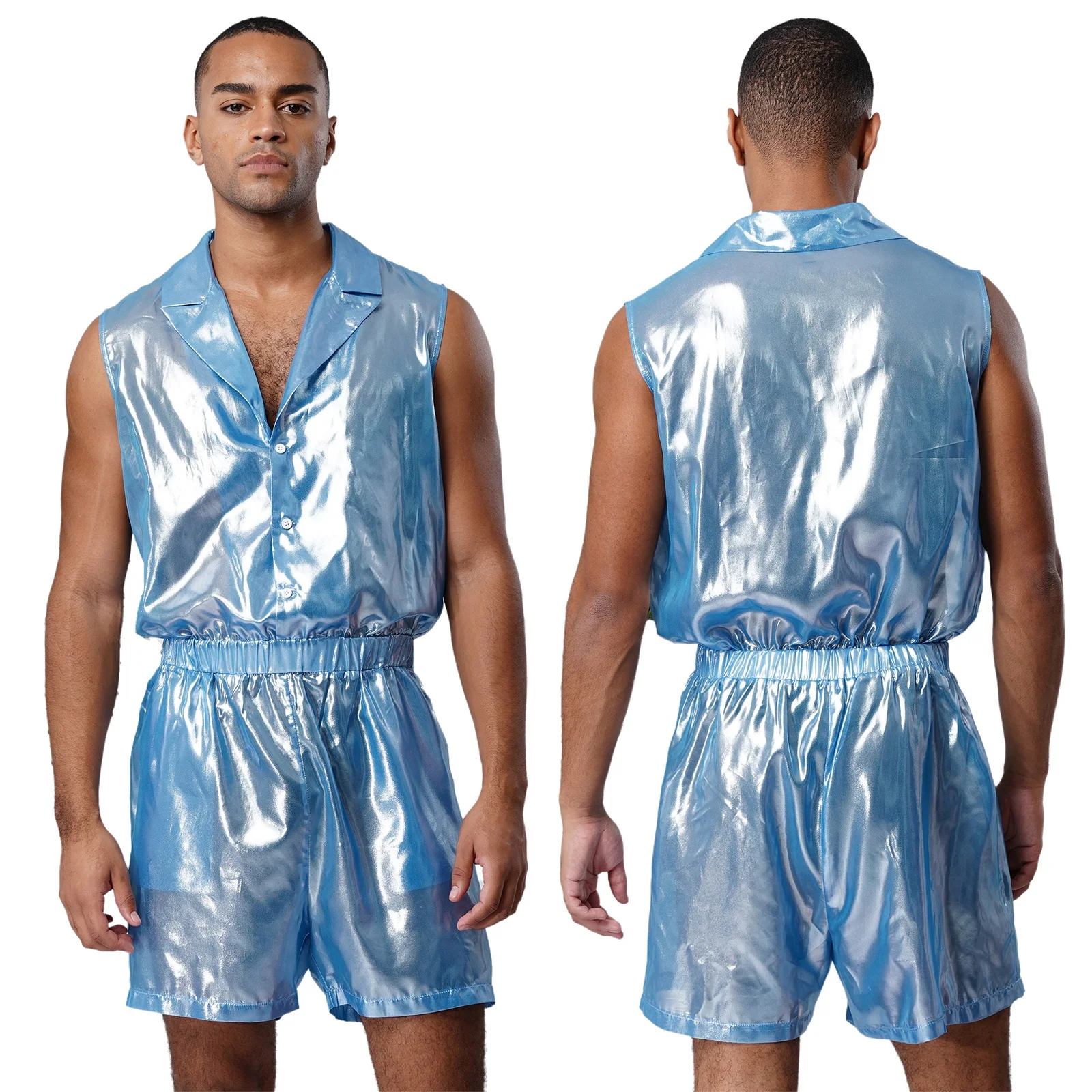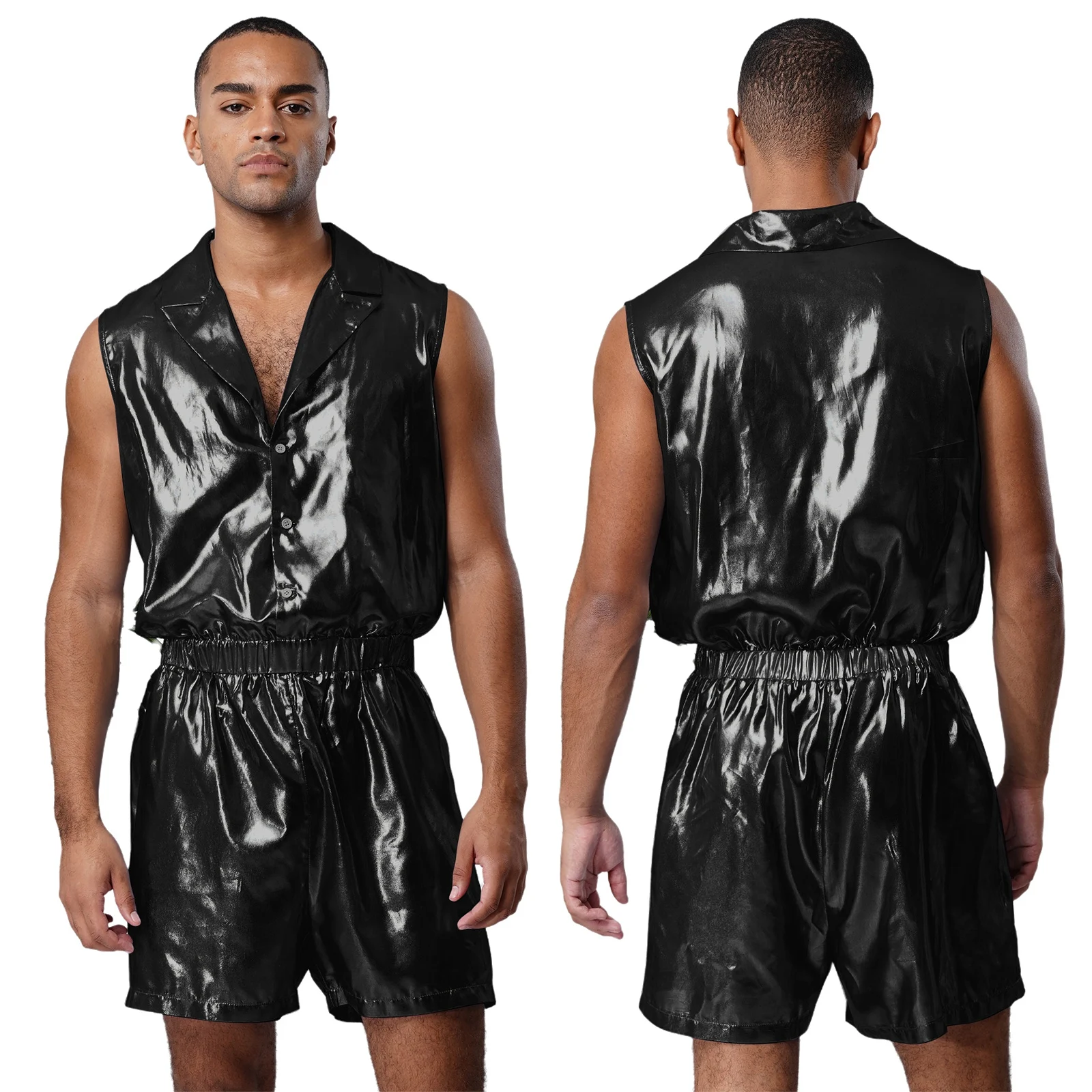 Le design sans manches et la taille élastique offrent non seulement une liberté de mouvement, mais accentuent également la forme du corps masculin, en suivant la tendance de la mode actuelle de mettre en valeur la silhouette.