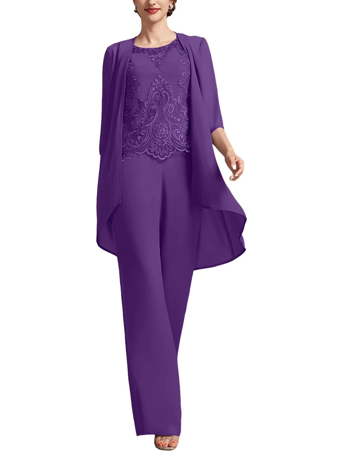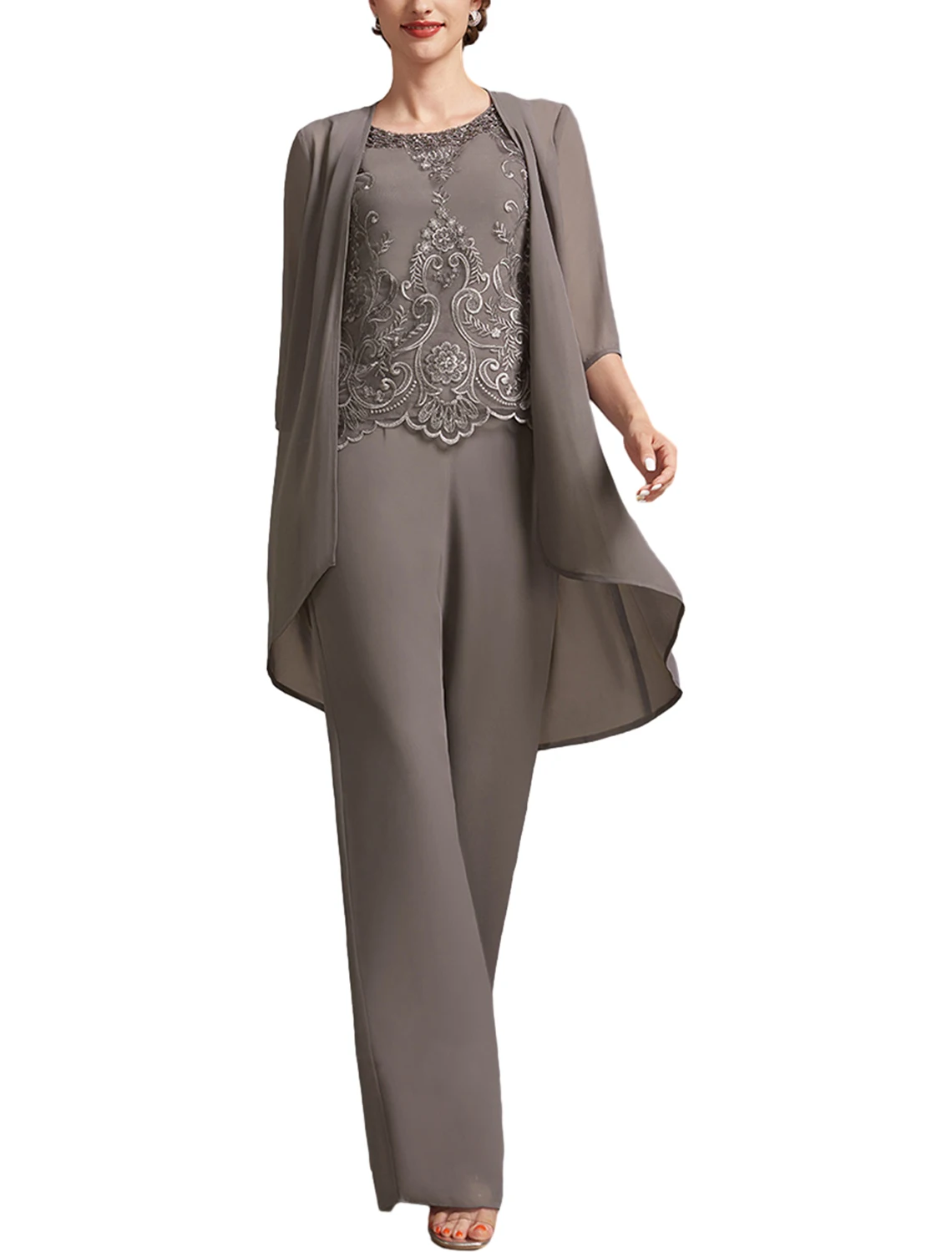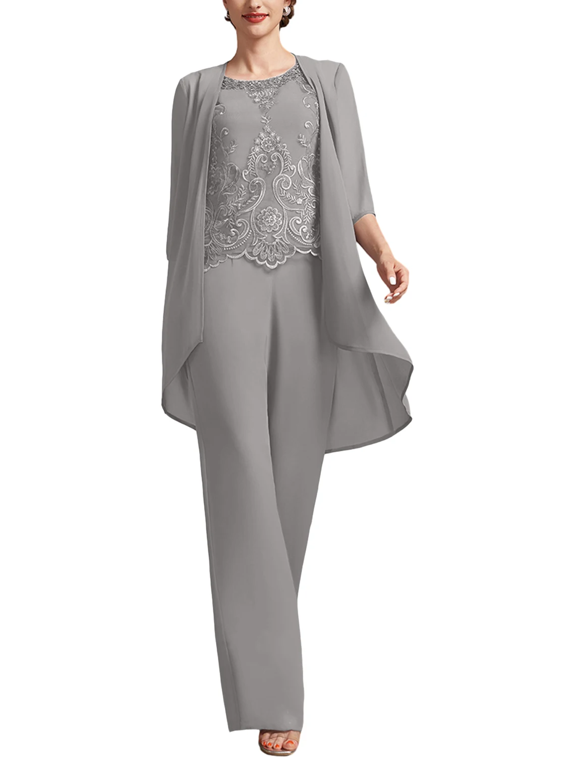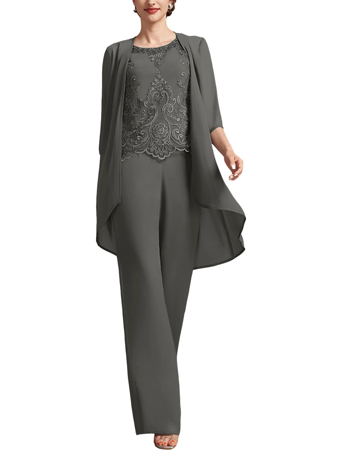 Combinaison pantalon 3 pièces élégante mère de la robe de mariée robe d'invité de mariage en mousseline de soie froncée couleur unie 2025 gratuit personnalisé