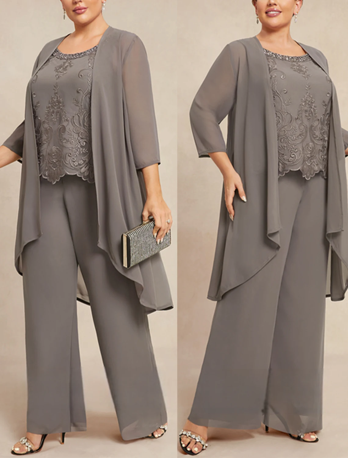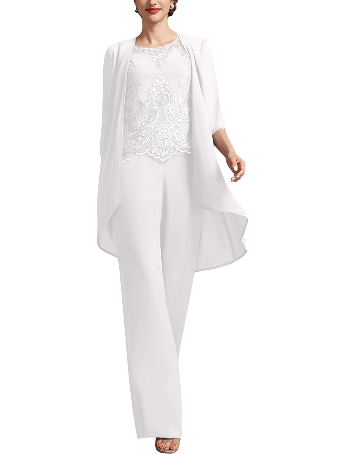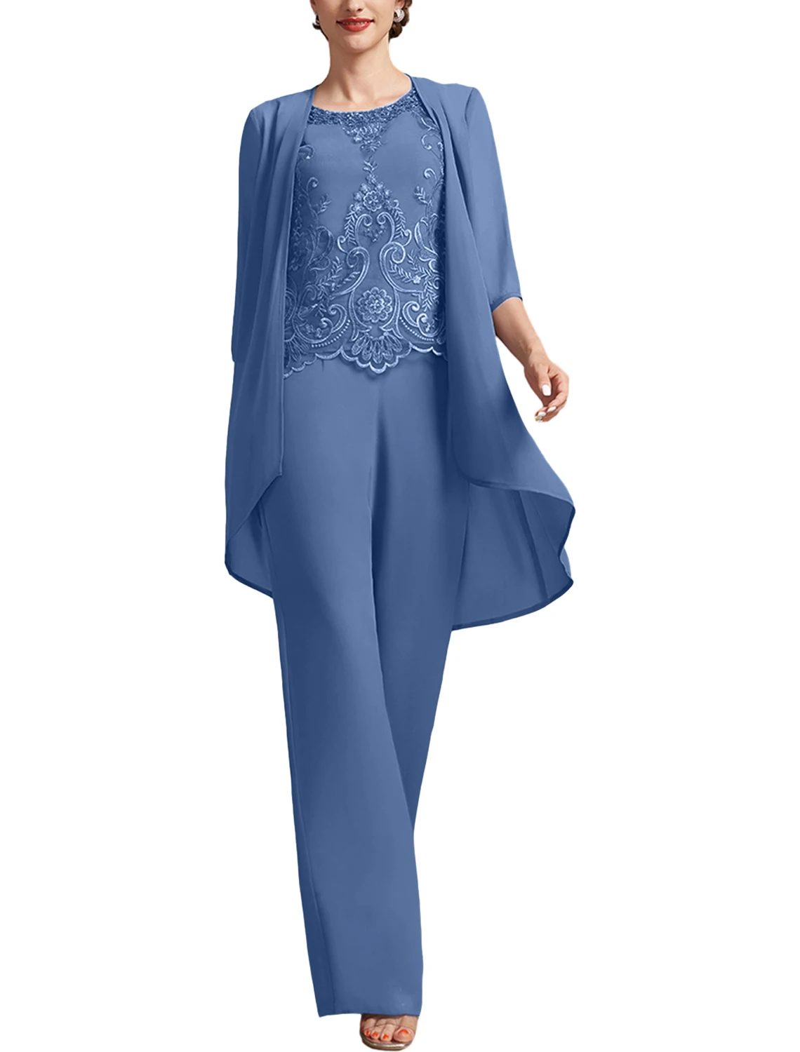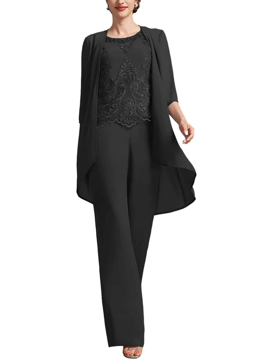 Combinaison pantalon 3 pièces élégante mère de la robe de mariée robe d'invité de mariage en mousseline de soie froncée couleur unie 2025 gratuit personnalisé