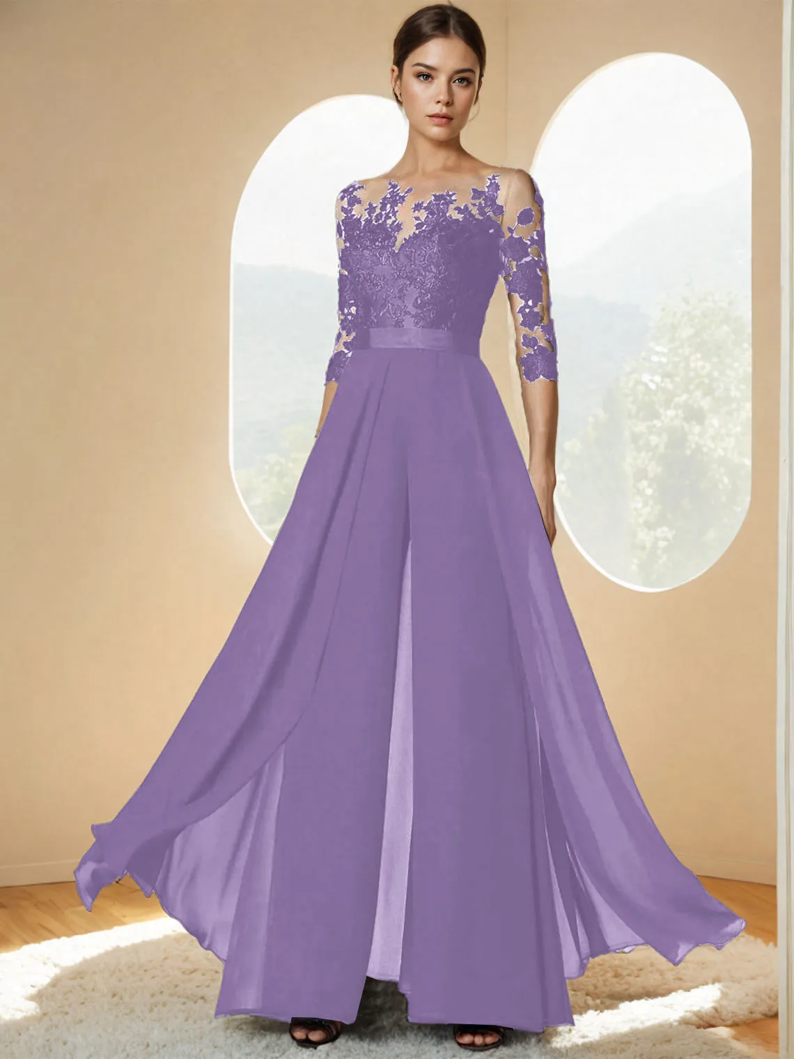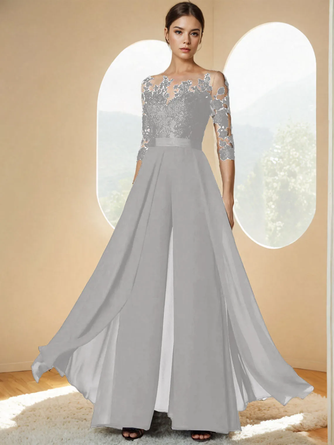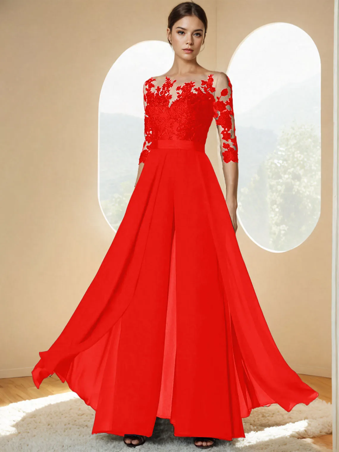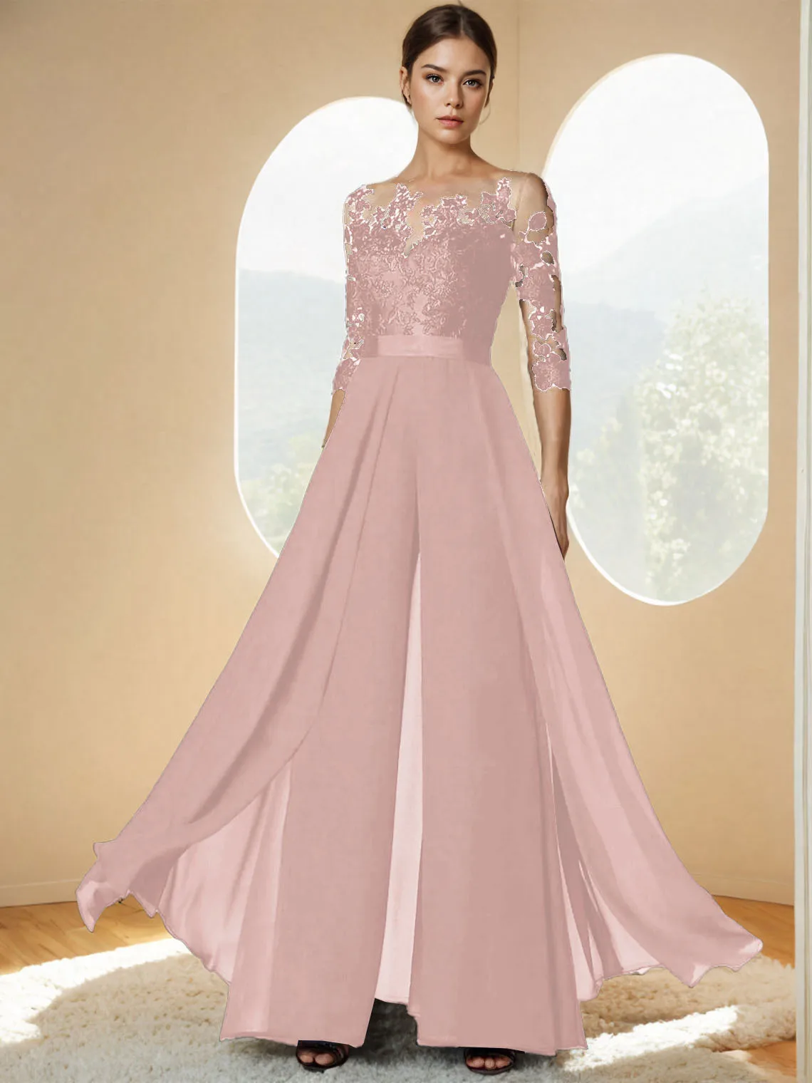 Combinaison/Pantalon mère de la mariée robe formelle invité de mariage élégante fête encolure dégagée longueur cheville en mousseline de soie dentelle 3/4 longueur manches avec appliques 2025 gratuit personnalisé