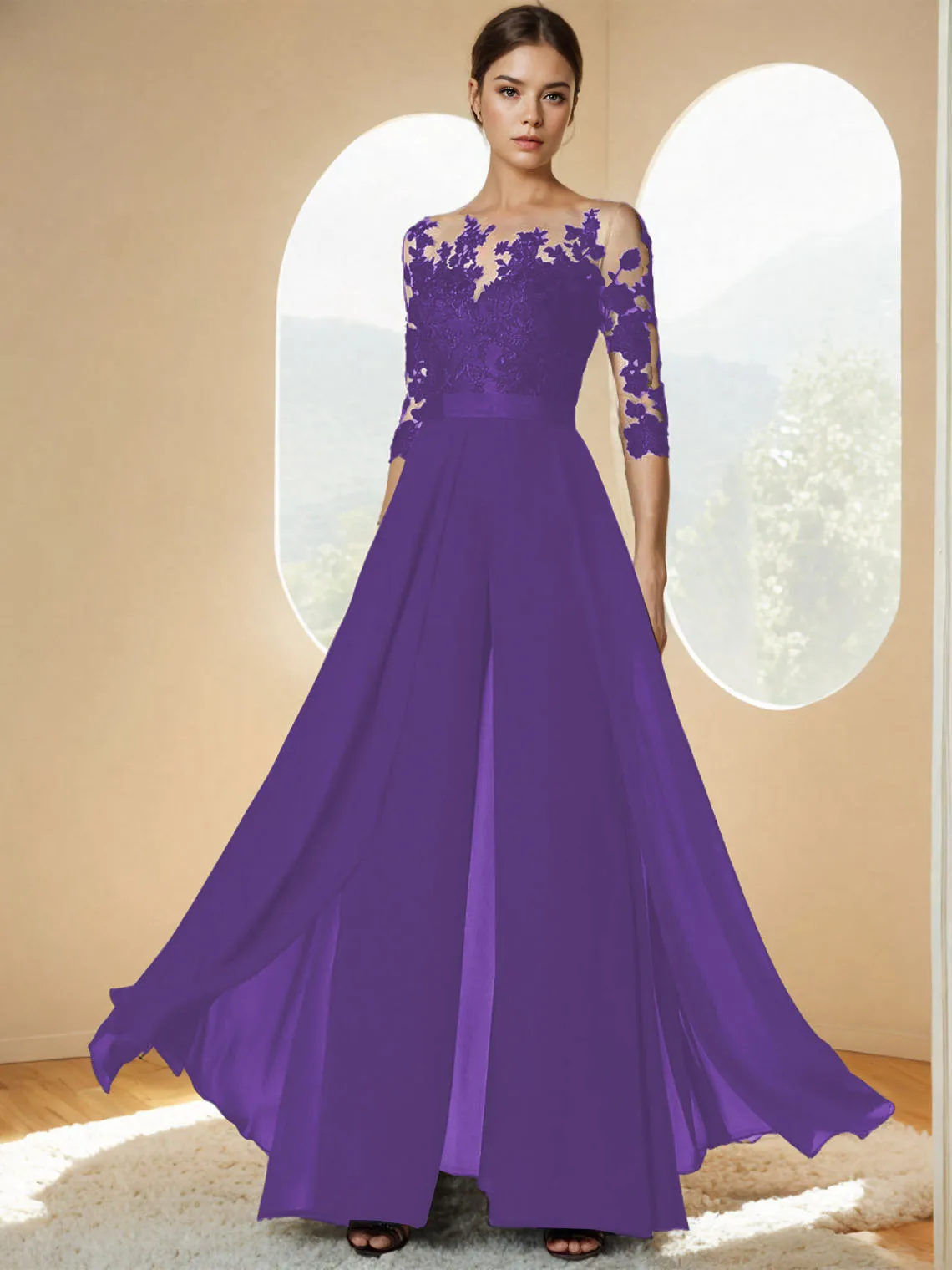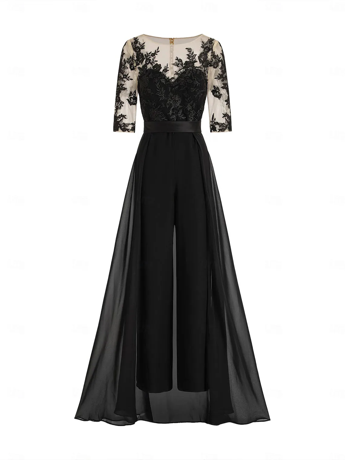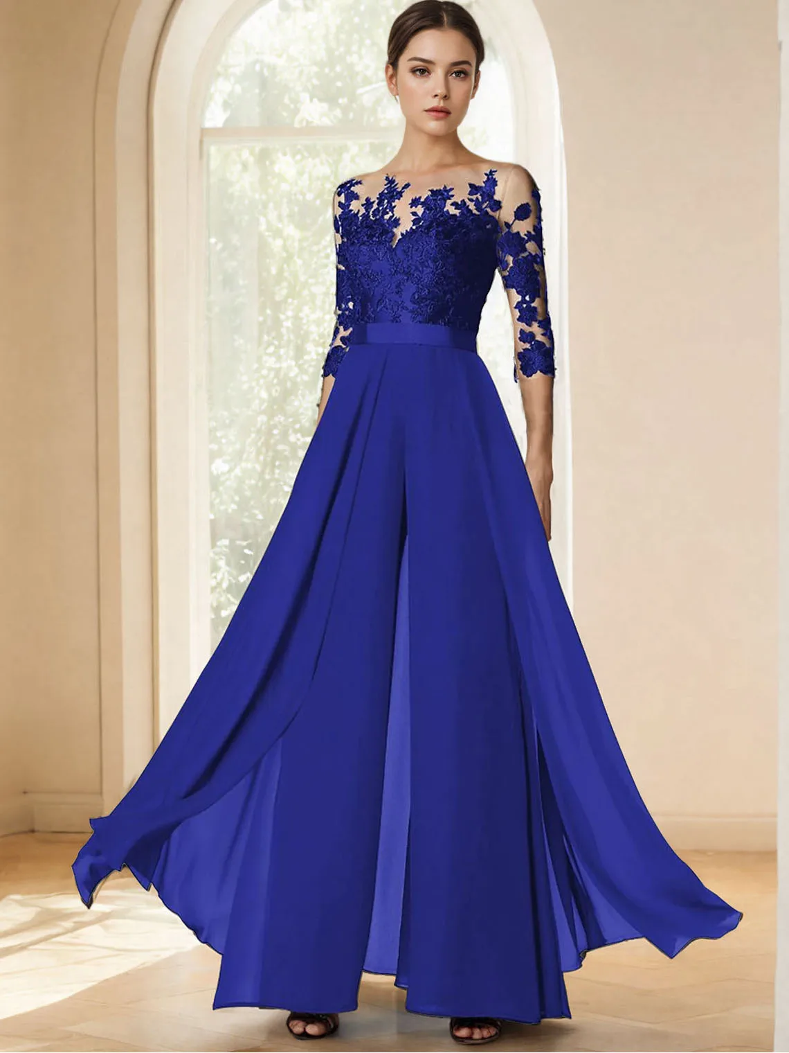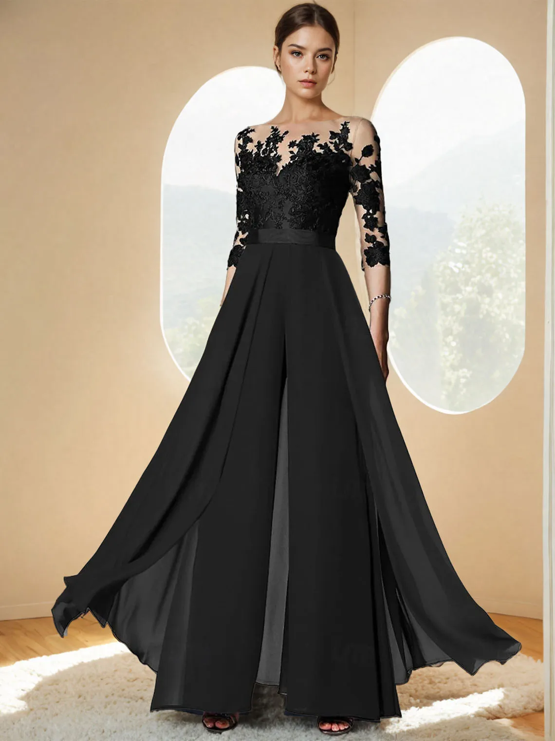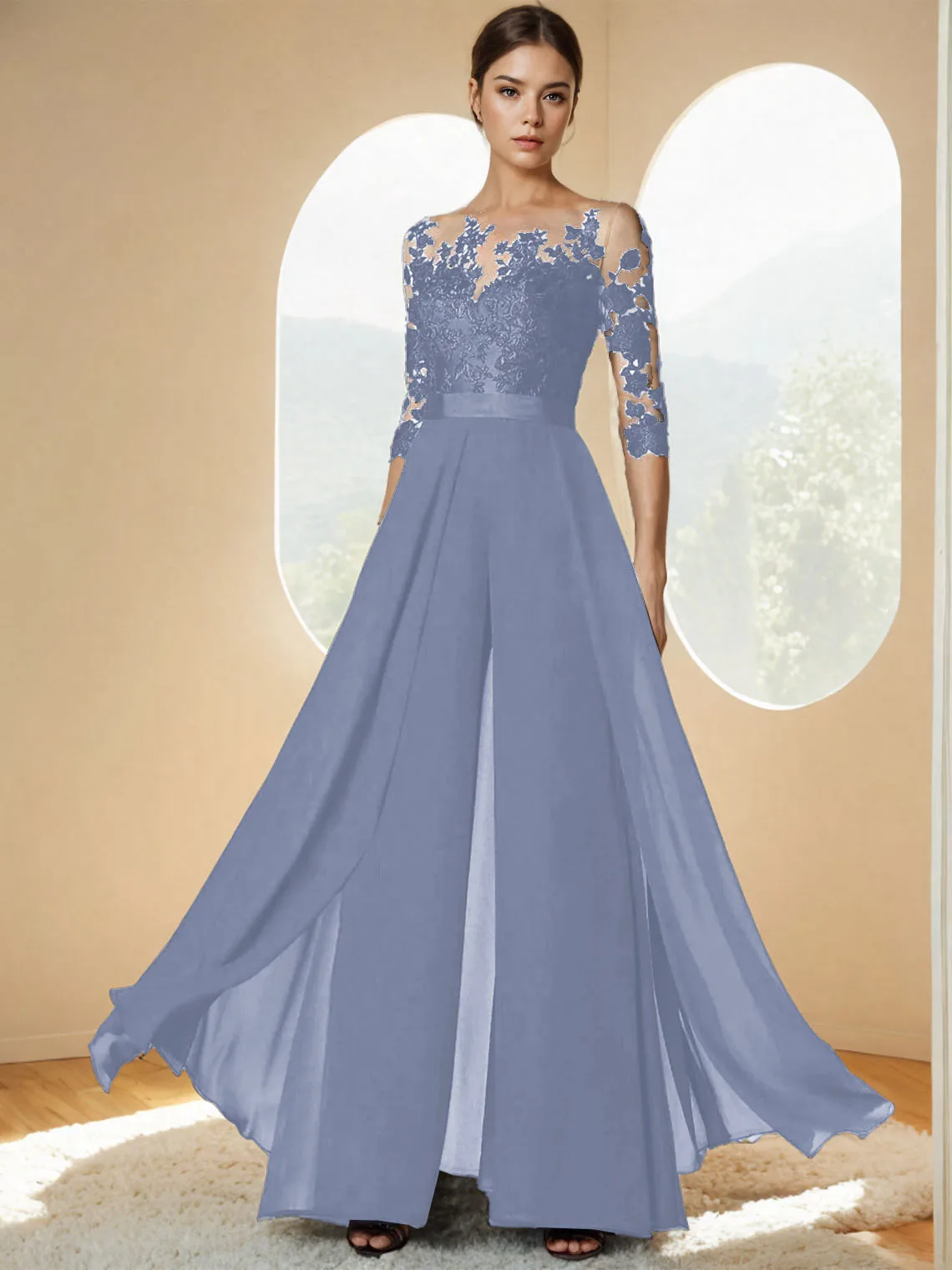 Combinaison/Pantalon mère de la mariée robe formelle invité de mariage élégante fête encolure dégagée longueur cheville en mousseline de soie dentelle 3/4 longueur manches avec appliques 2025 gratuit personnalisé
