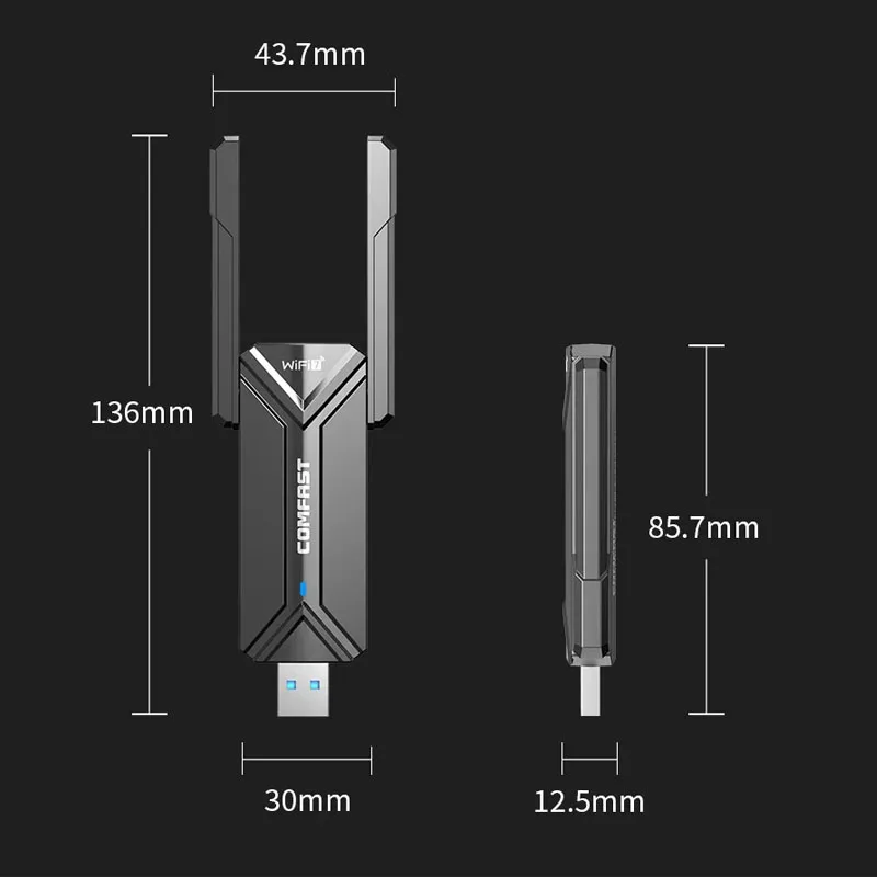 Tri-bande 6452Mbps, sans pilote, double antenne, adaptateur sans fil USB3.0