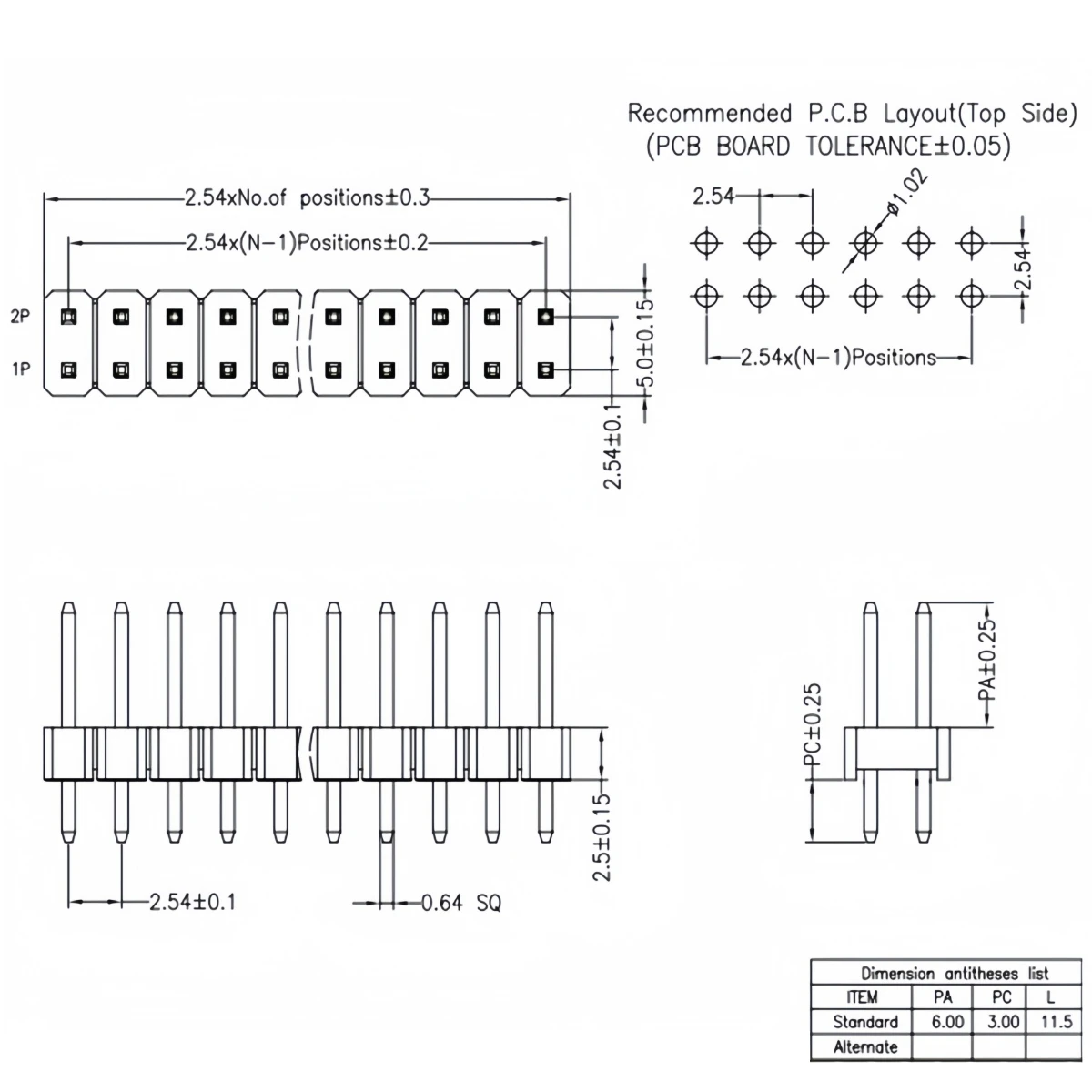 Connecteur d'en-tête de broche de carte PCB double Nucleo Male 2 ~ 40P, 2.54mm, 2x2, 3, 4, 6, 8, 10, 12, 15, 20, 40P ardu37