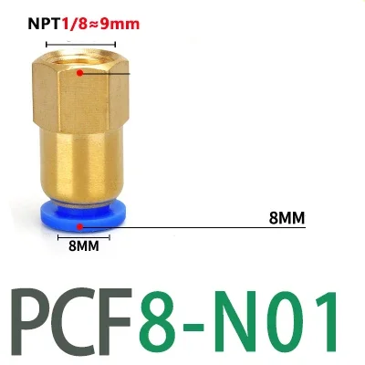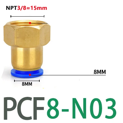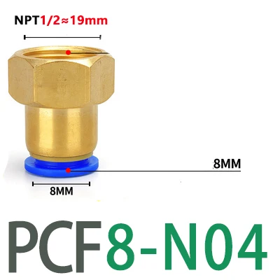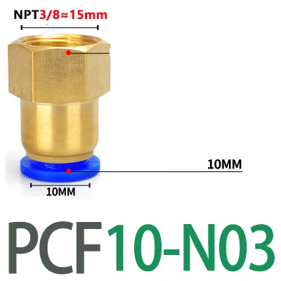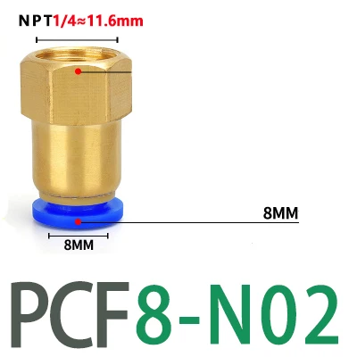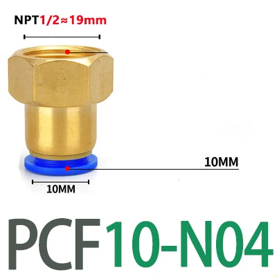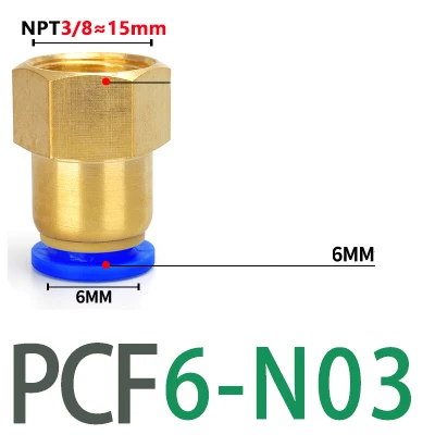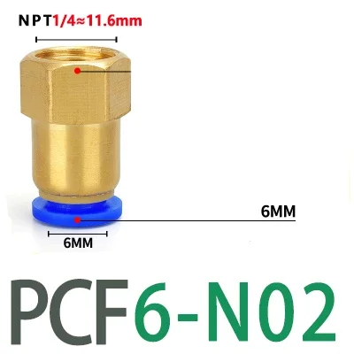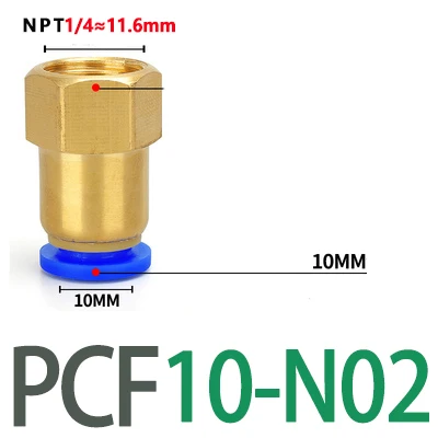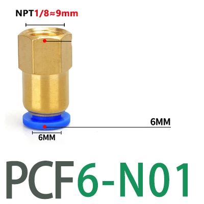 Connecteur rapide pneumatique PCF, filetage interne NPT Standard américain N1/8 N1/4 N3/8 N1/2, tuyau d'air en PU 4 6 8 10 12mm 6-NPT1/4
