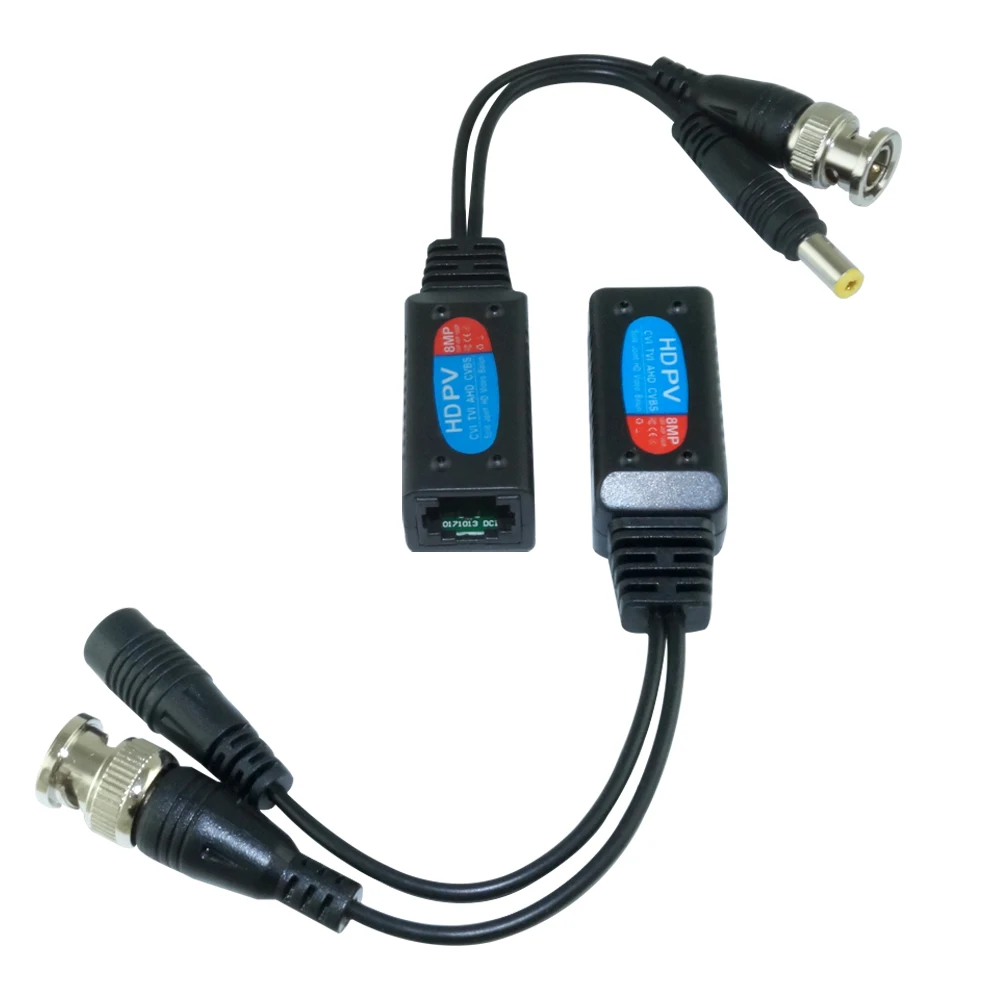 Connecteurs Balun vidéo HD 8MP, Conversion BNC vers RJ45, paire torsadée, prise en charge Ethernet pour caméras de vidéosurveillance AHD CVI TVI CVBS
