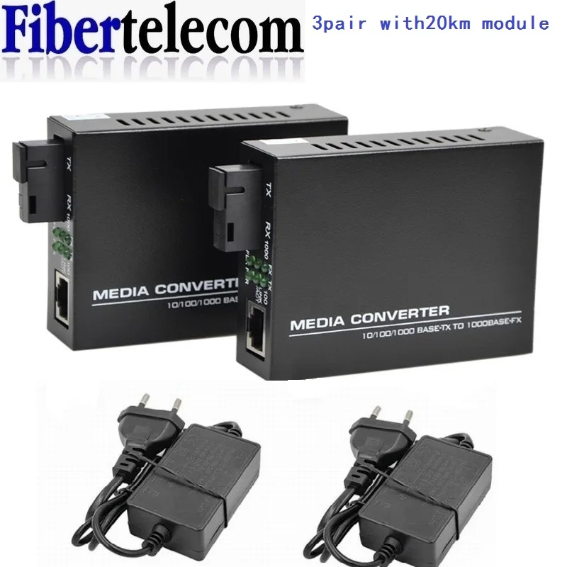 Convertisseur de média à Fiber optique Gigabit 10/100/1000Mbps monomode 20Km UPC/APC SC-Port alimentation externe