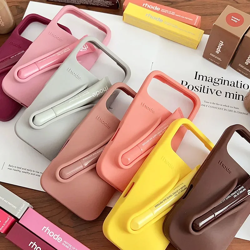 Coque de téléphone en silicone gris avec support pour rouge à lèvres et ruban, pour iPhone 17 Pro Max, Air 15, 14, 13, 12, 11, 17 ProMax Plus