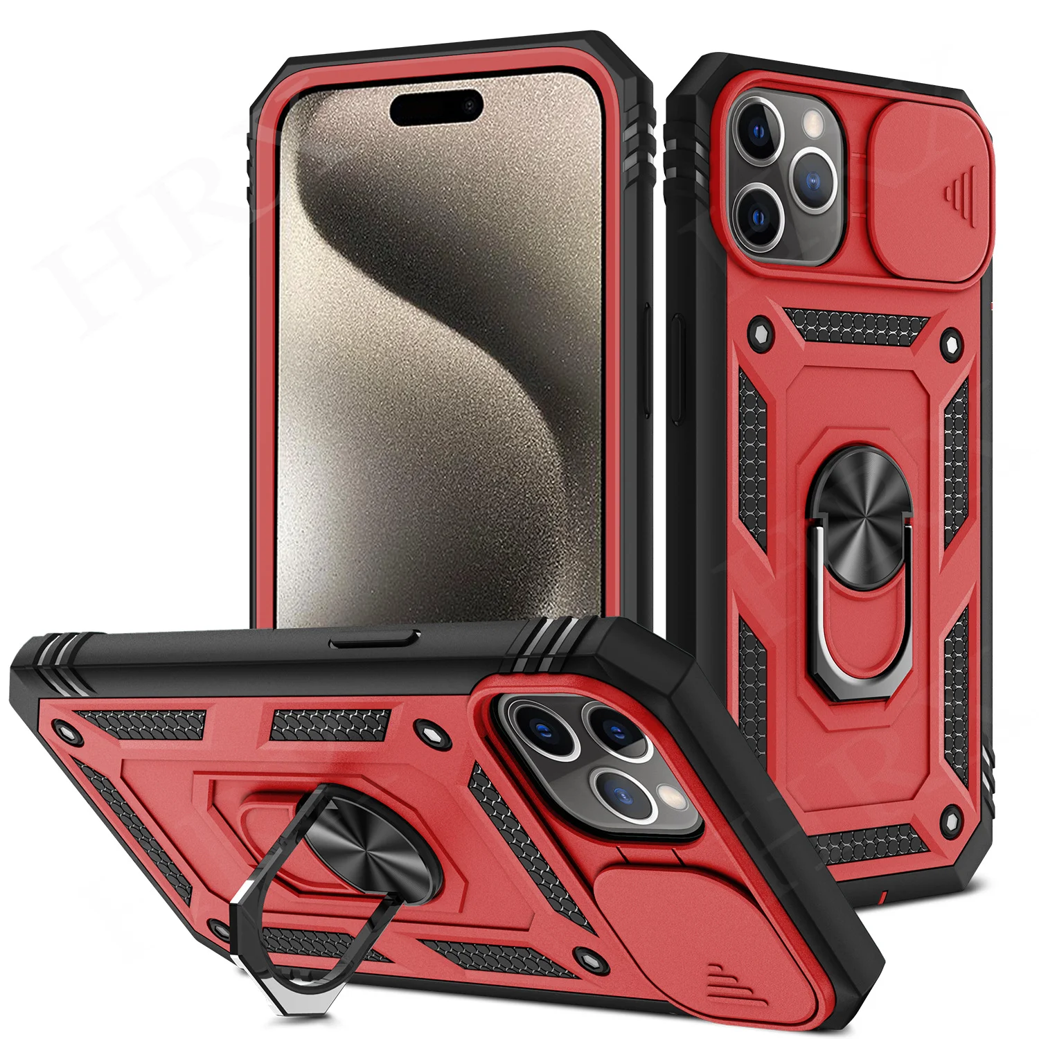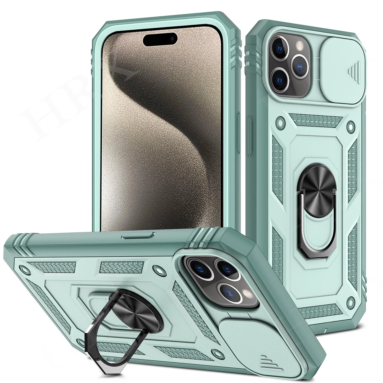 Coque pour iPhone 16 15 14 Pro Max 13 12 11 Pro Plus 360, corps complet, robuste, support de caméra coulissant, anneau de Protection