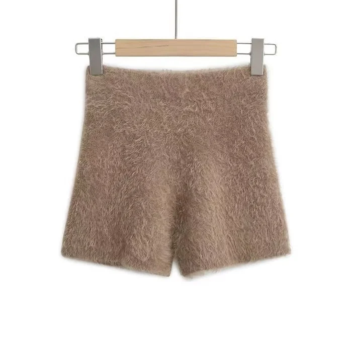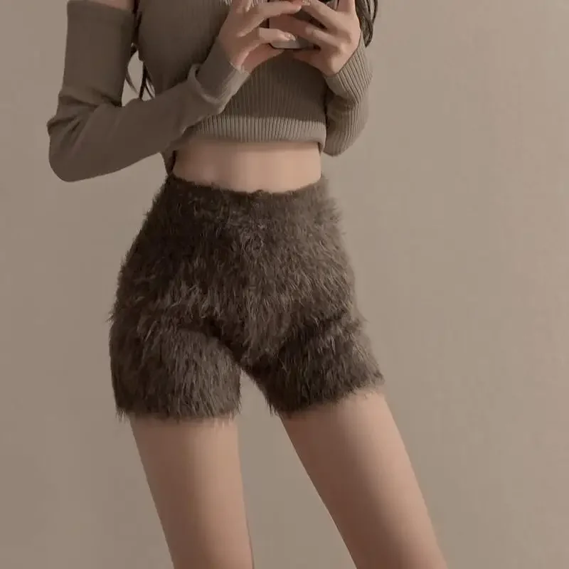 Coréen pantalons Cortos De Mujer tricoté Shorts pour femmes mode fourrure taille haute décontractée été Y2k pantalon 2025 nouveaux bas