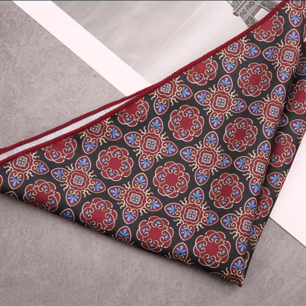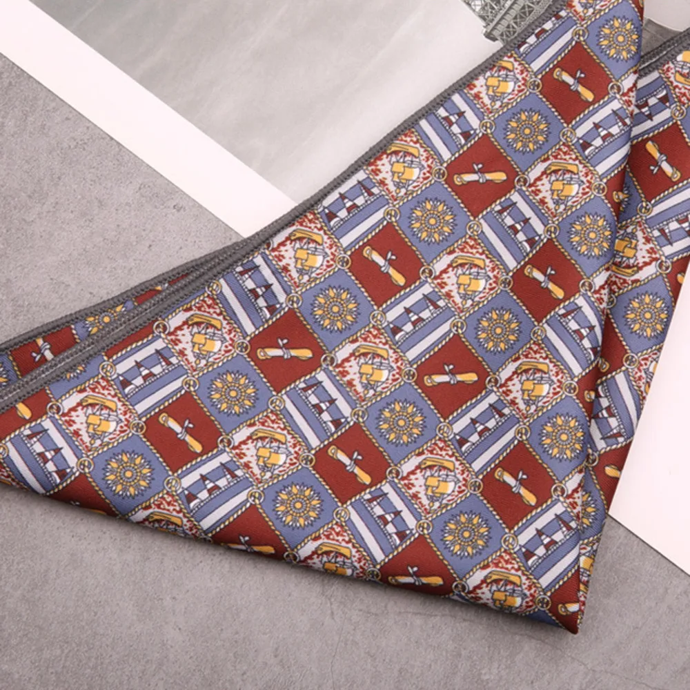 Costume de poche carré pour hommes, Style de rue Hongkang, serviette de poitrine décontractée, mouchoir imprimé marron, accessoires de costume d'affaires formel