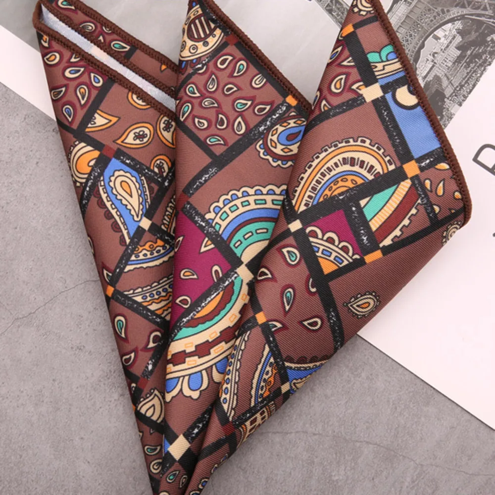 Costume carré de poche pour hommes, Style de rue, serviette de poitrine décontractée, mouchoir imprimé marron, accessoires de costume d'affaires