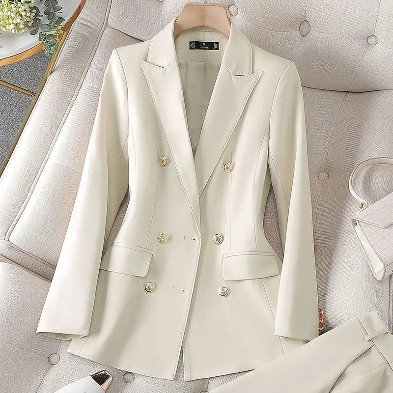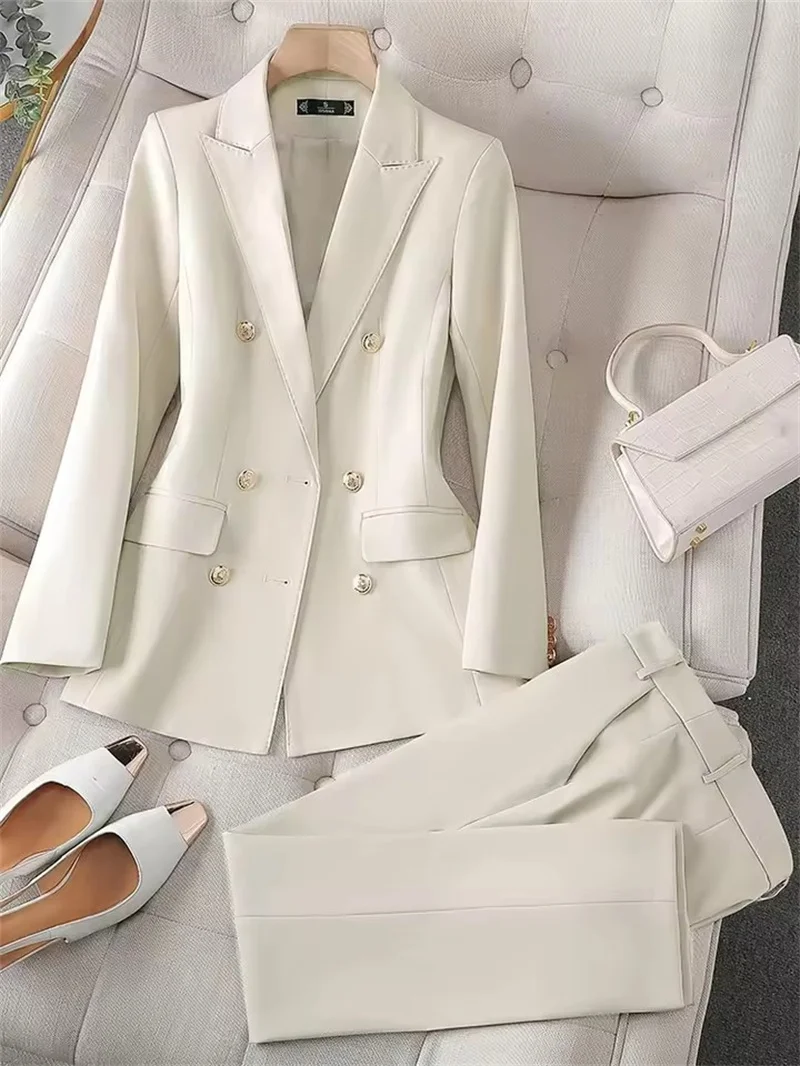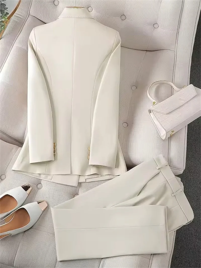 Costume pantalon de bureau pour femmes, ensemble 2 pièces, couleur unie, Double boutonnage, vêtements de travail d'affaires, Blazer, veste et pantalon féminins
