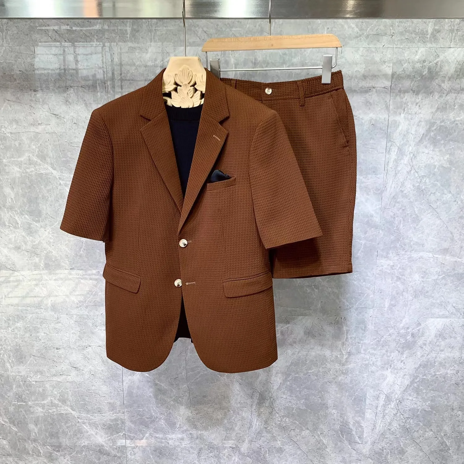 Costumes à manches courtes pour hommes, vestes et Shorts de Style coréen, tissu pied-de-poule Simple et solide, ensembles deux pièces confortables et ajustés