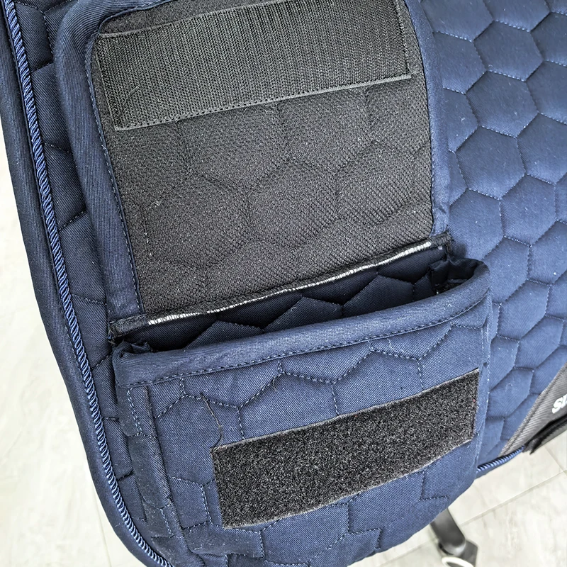 Conçue pour les disciplines anglaises, cette sacoche profilée dispose de deux poches de rangement extensibles, chacune capable de contenir deux bouteilles d'eau standard, intégrées de manière transparente dans un tissu matelassé bordeaux ou bleu marine. Son canal de colonne vertébrale ergonomique avec relief de flétrissement s'adapte au dos du cheval pour un positionnement sécurisé et des points de pression réduits, tandis que les coutures de canal hexagonal sur la doublure évacuant l'humidité maximisent la circulation de l'air et la dispersion de la transpiration. Les coutures renforcées et le tissu indéchirable assurent la longévité lors d'une utilisation rigoureuse, offrant une polyvalence fonctionnelle et un confort équitable à un prix compétitif accessible.
