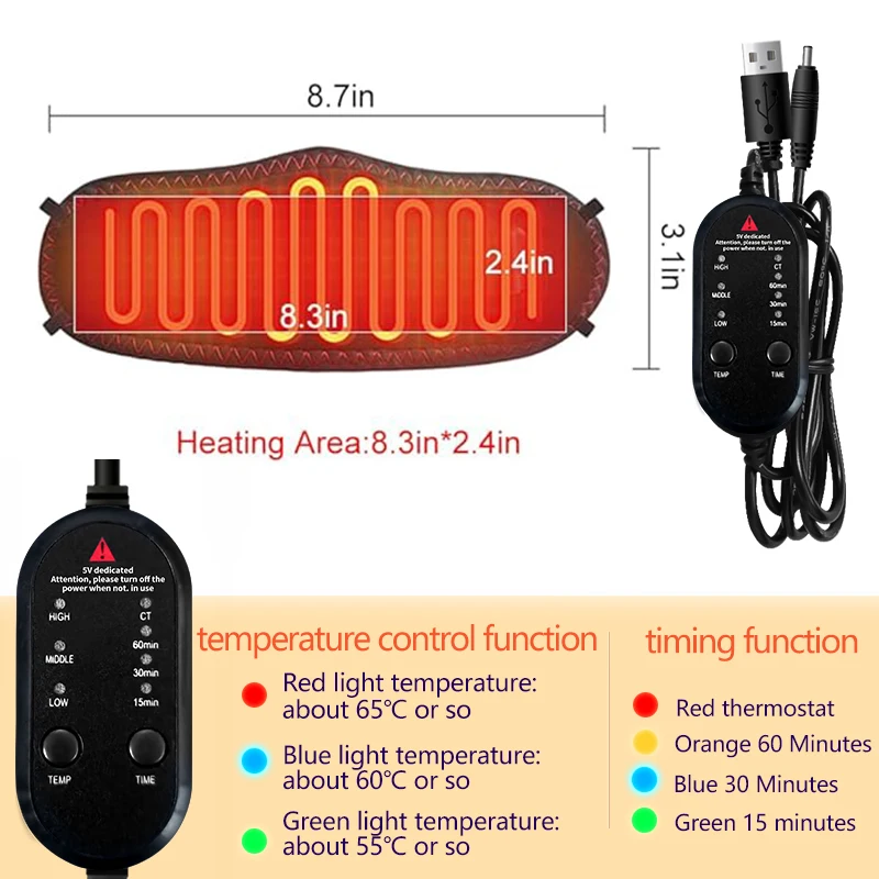 Température de chauffage : 3 vitesses, rouge 65℃, Bleu 60℃, Vert 55℃