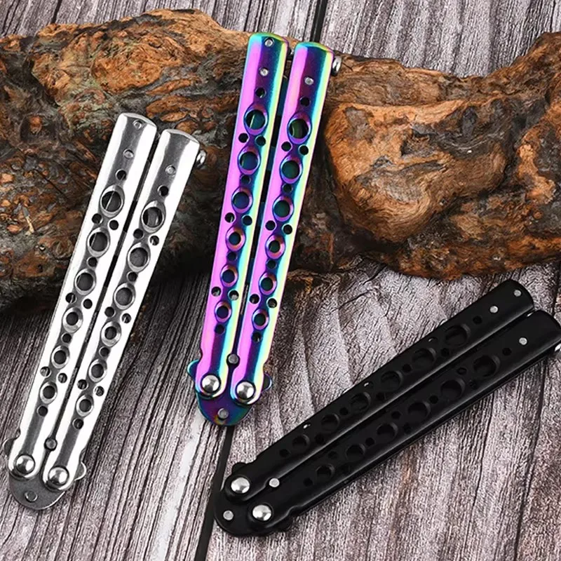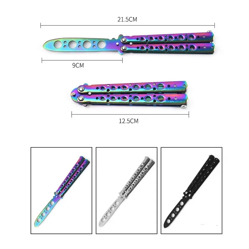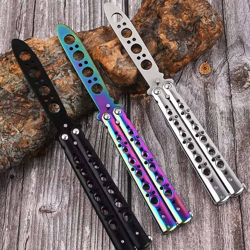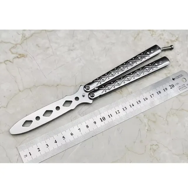 Couteau papillon pliable portable en acier inoxydable, couteau de poche d'entraînement, outil de jeu et d'entraînement en plein air, peut être retourné et déformé