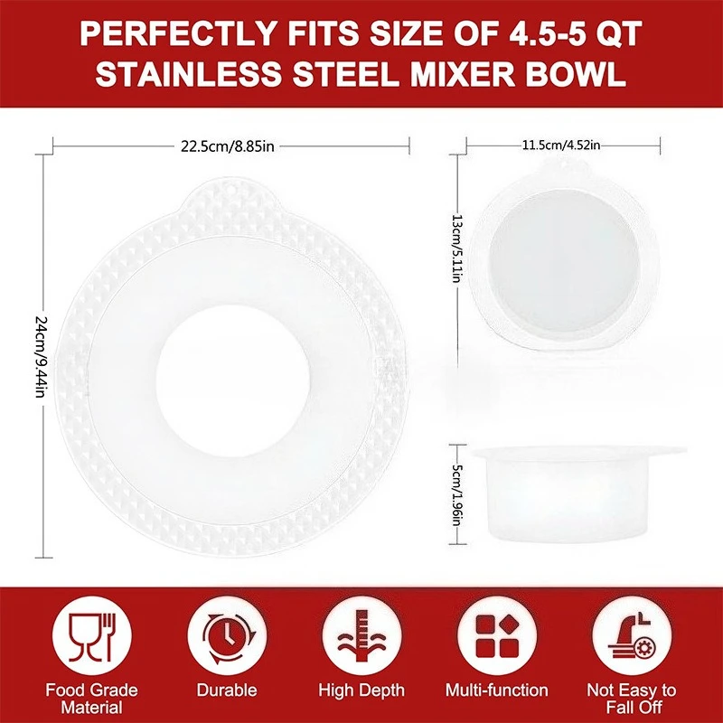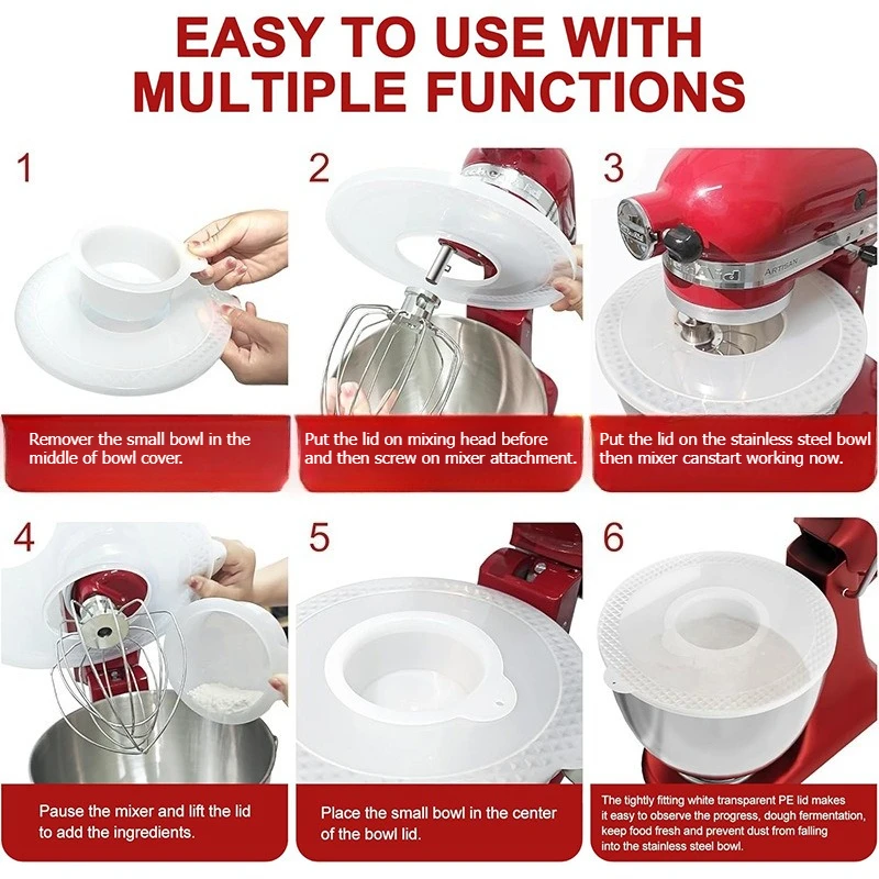 Couvercles de bol de mélangeur PQPO – Conçus pour être utilisés avec le batteur sur socle à tête inclinable de 4,5 à 5 litres, ces couvercles de bol maintiennent efficacement les ingrédients à l'intérieur du bol, empêchant les ingrédients légers comme la farine de s'envoler et gardant les comptoirs de cuisine propres.