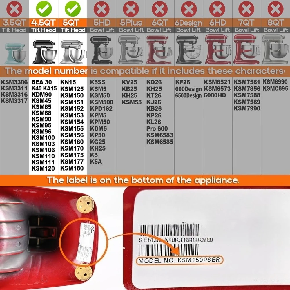 PQPO 4. Couvercles de bol de mélangeur de 5 à 5 litres – compatibles avec KitchenAid BEA30, K45, KA15, KDM90, KSM45, KSM85, KSM88, KSM90, KSM95, KSM96, KSM100, KSM103, KSM106, KSM111, KSM120, KN15, KSM125, KSM150, KSM151, KSM152, KSM153, KSM154, KSM155, KSM155, KSM156, KSM160, KSM170, KSM175, KSM