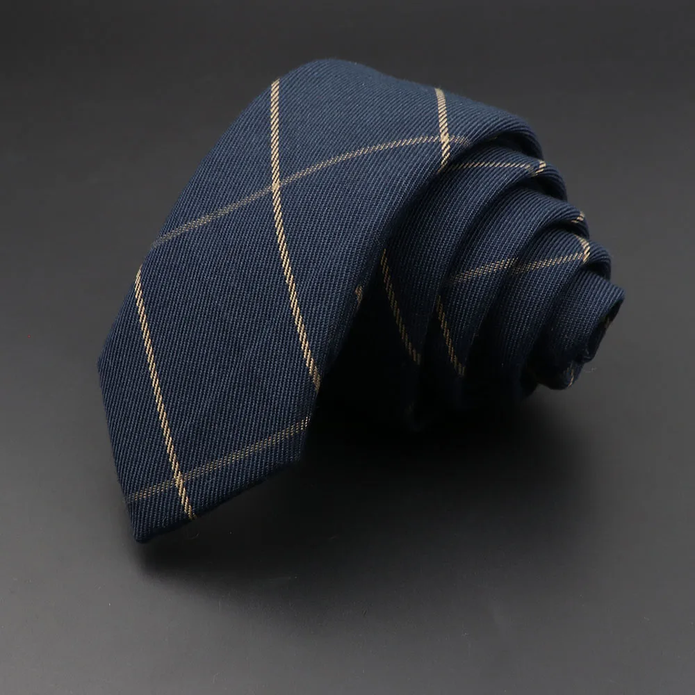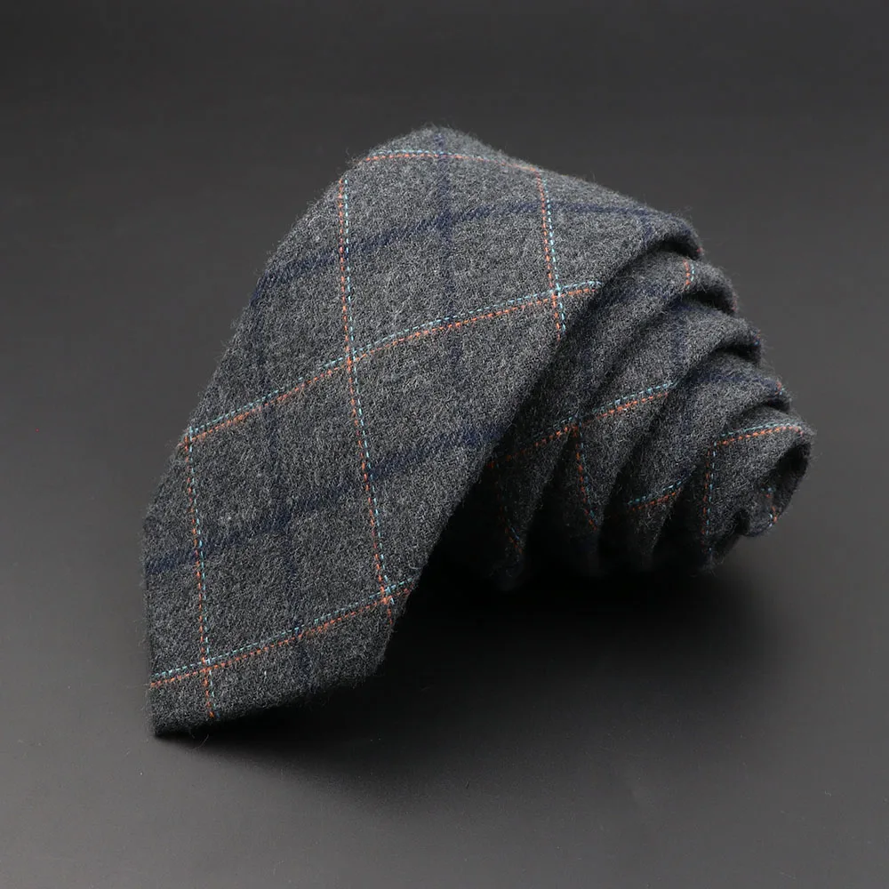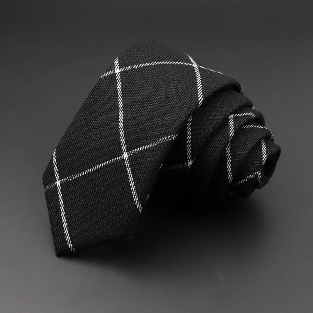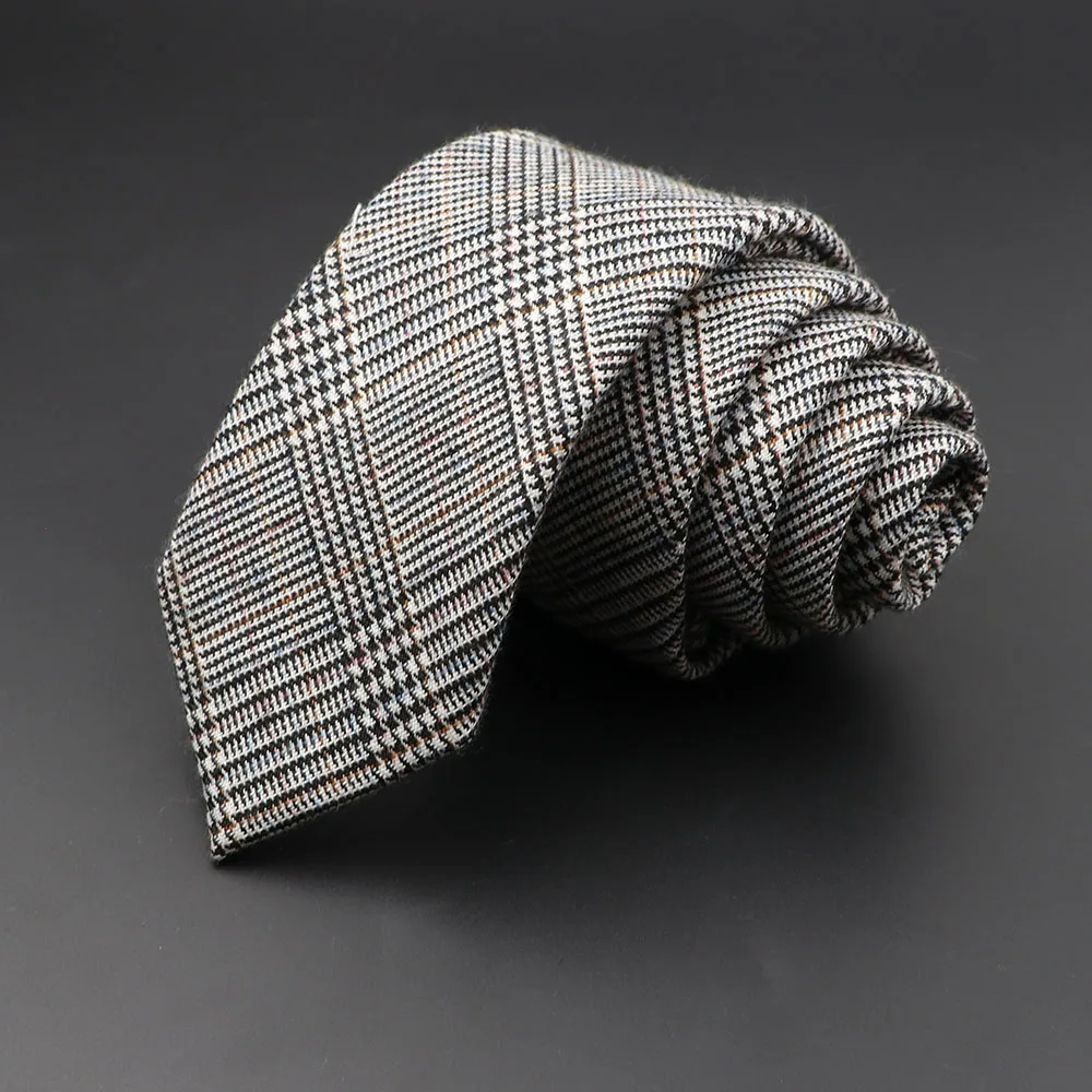 Cravates pour hommes 6 cm classique coton fait à la main maigre gris Plaid cravates rayé col étroit mince cachemire décontracté cravate accessoires cadeau