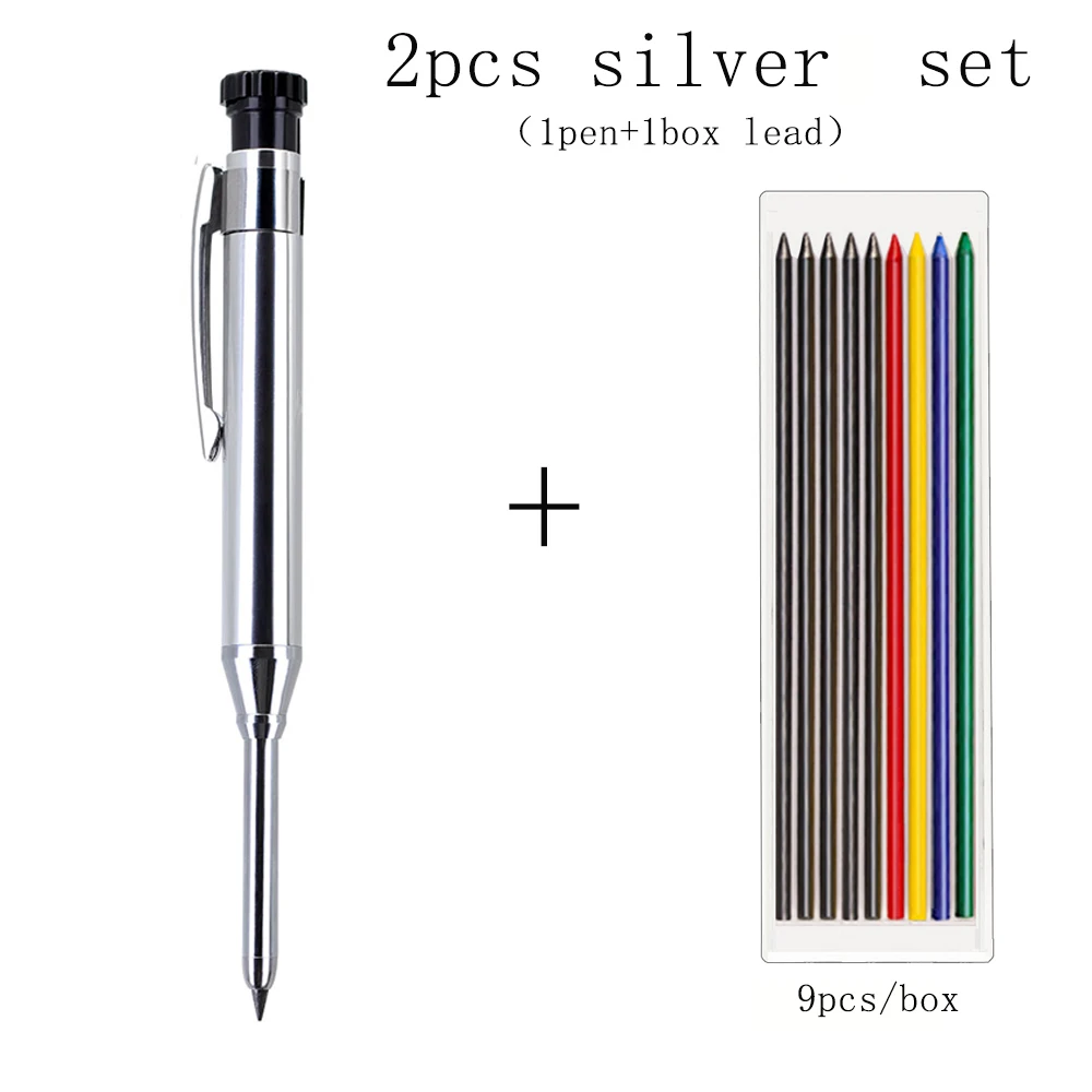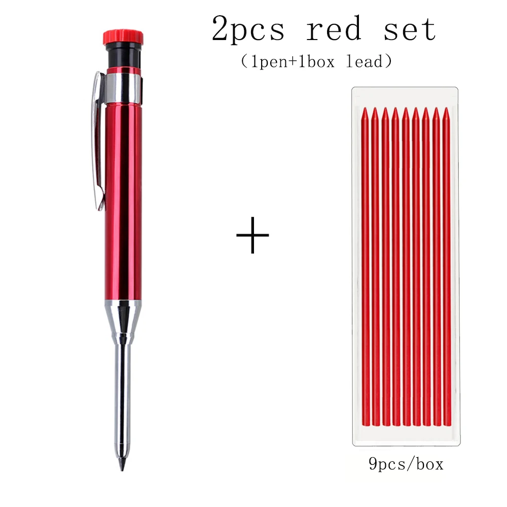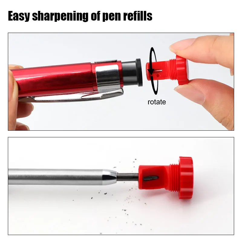 Crayon mécanique de charpentier solide en métal, 6 couleurs, 2.8mm, avec taille-crayon, noyau de plomb 2B, trou profond, outil de marquage de Construction