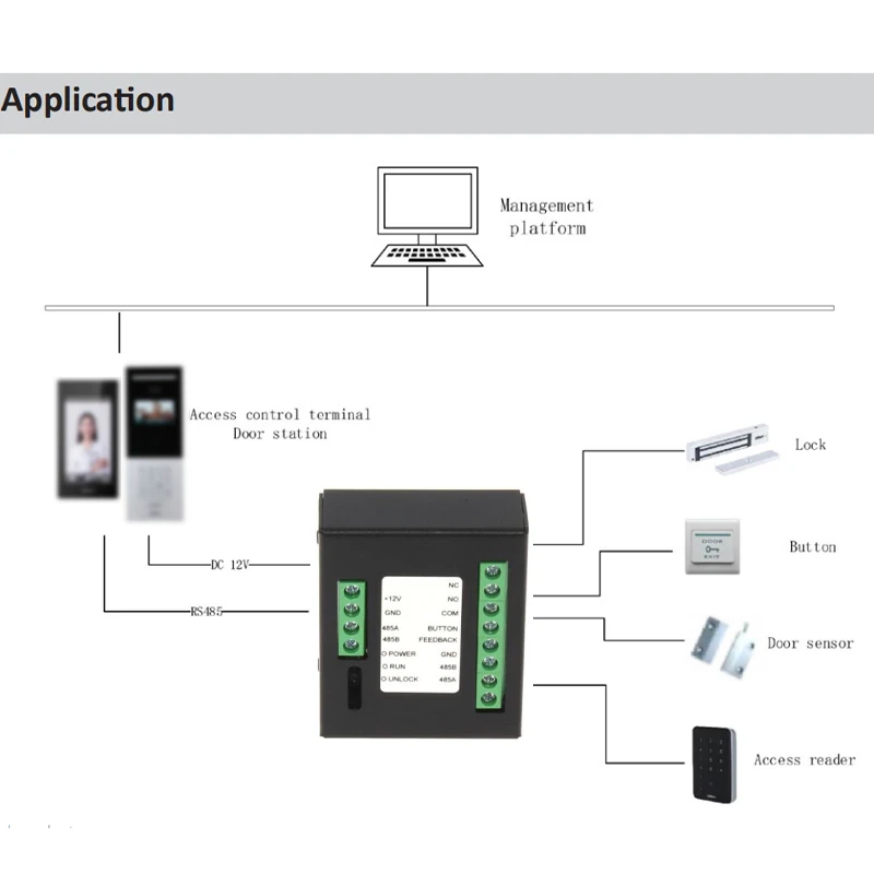 > Utilisé pour étendre les fonctions de contrôle d'accès en travaillant avec le terminal de contrôle d'accès et la station de porte.