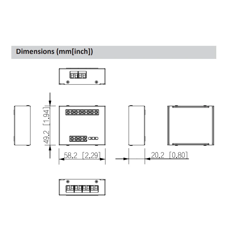 58,2 mm 49,2 mm 20,2 mm (2,29" 1,94" 0,8") (L H P)